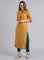 Blue ankle length trousers with elasticated back. It is made up of viscose & polyester.