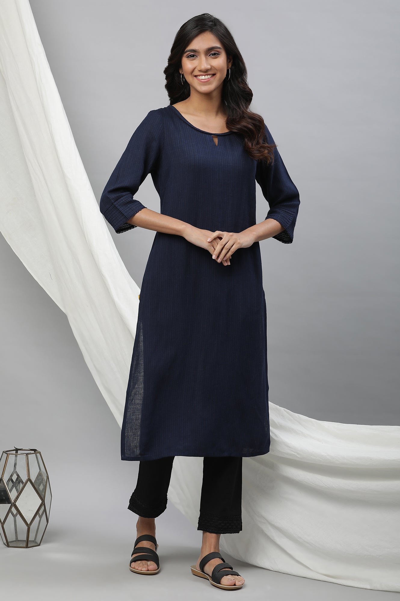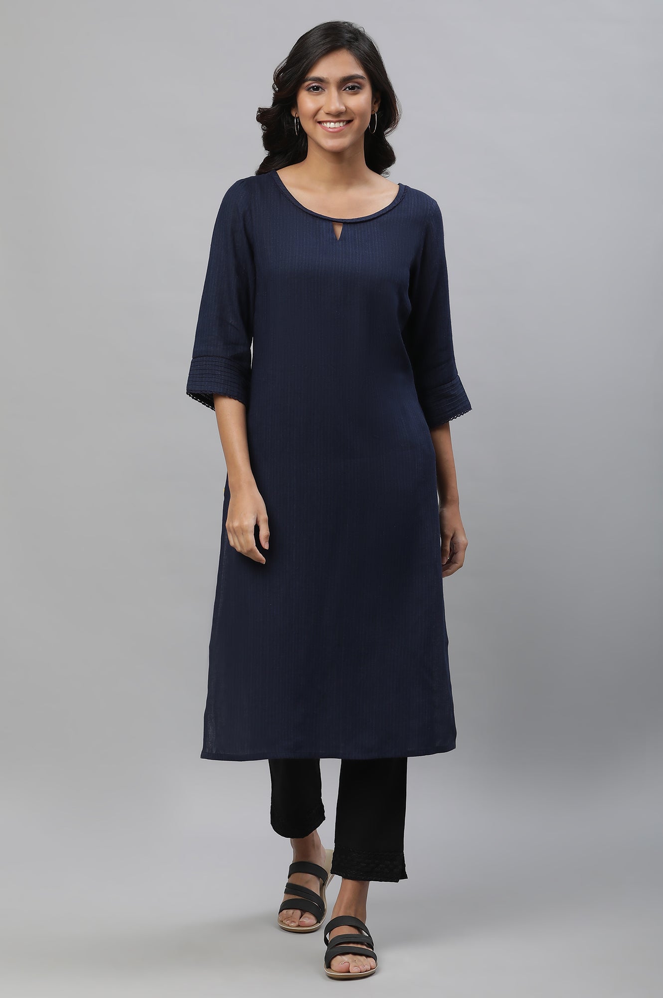 This blue yarn-dyed straight kurta is a timeless addition to everyday wardrobes. Designed for women who value elegance and comfort, the kurta’s textured finish enhances its ethnic charm. Its straight cut flatters all body types, while lightweight fabric ensures day-long comfort. Ideal as a kurta for women suited for office wear, casual meetups, or festive layering, it adapts to multiple occasions. Pair it with churidars, palazzos, or trousers for versatile styling. Its minimal yet stylish look reflects contemporary simplicity blended with traditional details. A chic wardrobe essential, this Aurelia kurta is perfect for transitioning from everyday wear to semi-formal events with effortless ease.