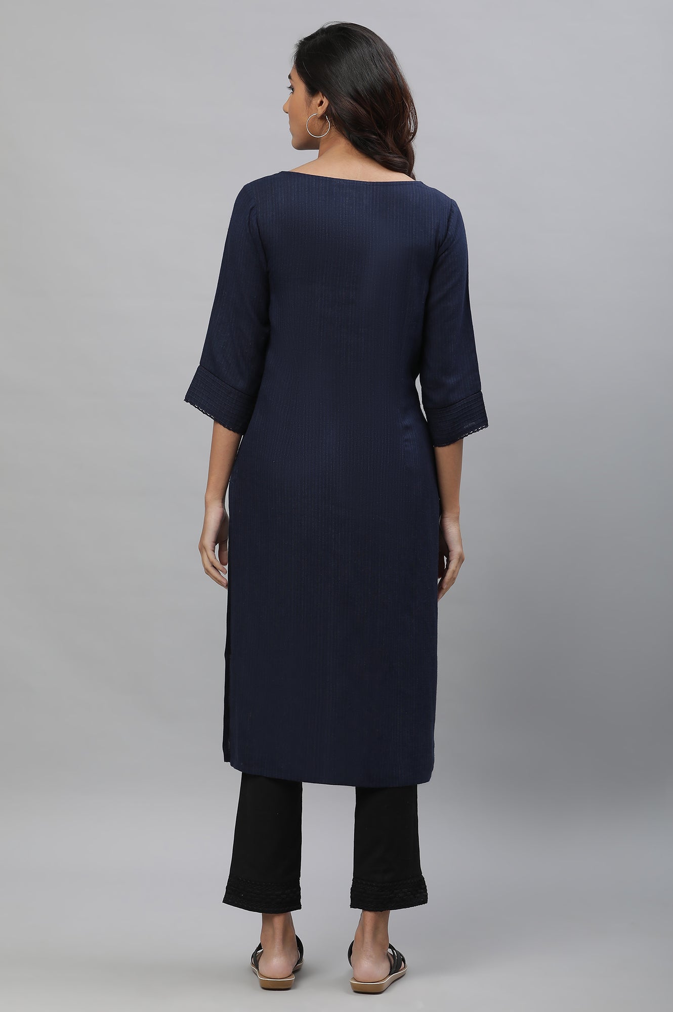 Blue Yarn Dyed Straight Kurta