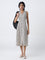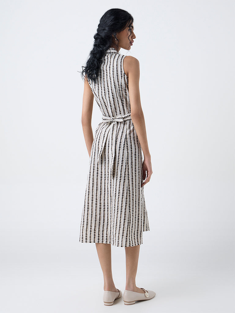 This black shirtdress from Bombay Paisley stands out with its distinct abstract patterns that lend an artistic touch to the silhouette. The notched lapel collar and sleeveless cut create an easy fall, while the button-up front keeps the look neatly structured. Crafted from a cotton-blend fabric for breathable comfort and finished with a back tie-up for a defined fit, it’s a versatile pick for daytime outings or holiday city strolls.