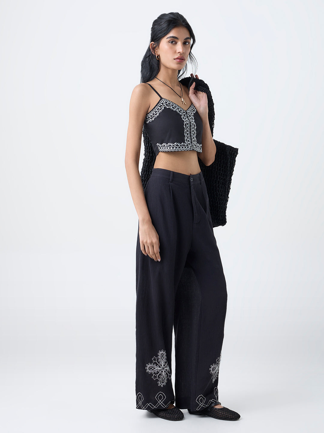 Bombay Paisley Black Embroidered Cotton Crop Top