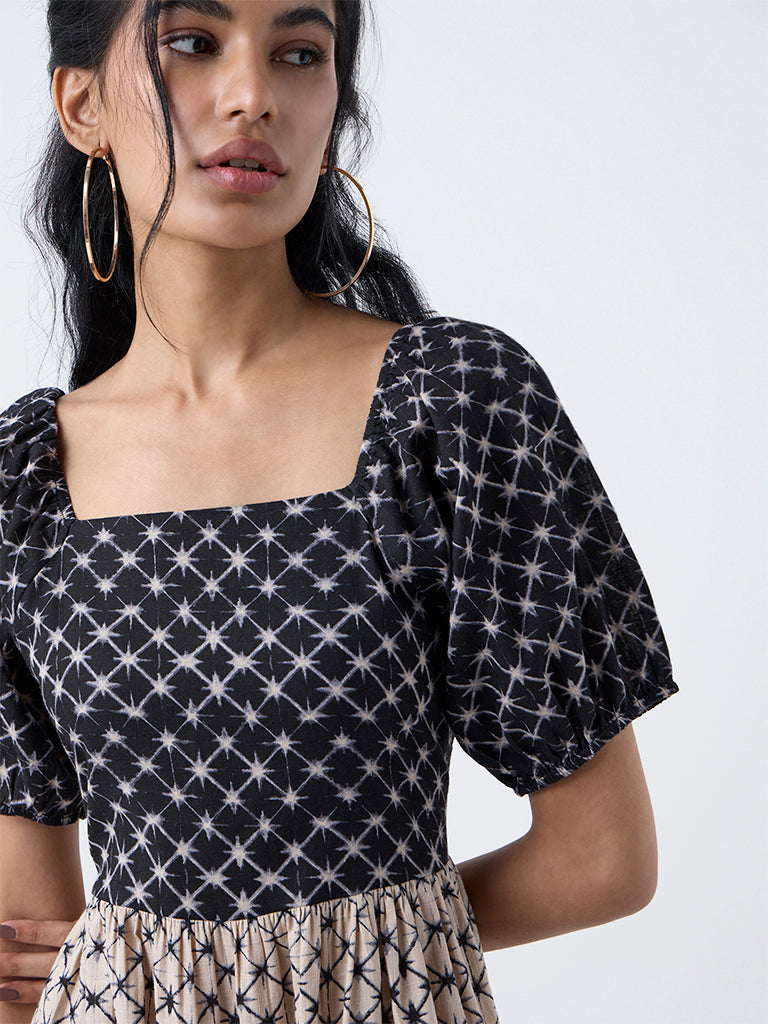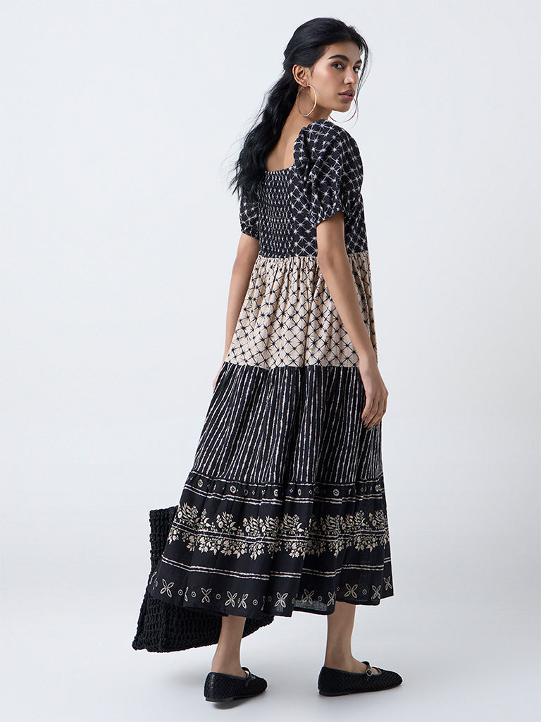 Bombay Paisley Black Printed Cotton Tiered Dress