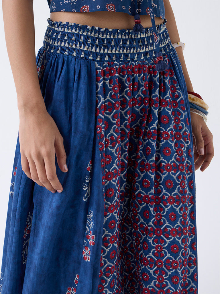 Perfect for mixing and matching, this blue skirt from Bombay Paisley is designed with an elasticated smocked waist for all-day comfort. A mix of thoughtfully placed prints adds visual structure while maintaining an easy, wearable appeal. Crafted from cotton-rich fabric, it allows natural movement making it a versatile pick for everyday outfits.