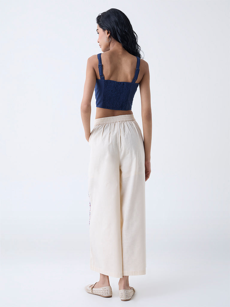 Bombay Paisley brings a crafted sensibility to this indigo top, defined by multi-hued floral embroidery that stands out against the rich base. It features broad adjustable straps, a square neckline and a softly smocked back that keeps the fit easy and breathable. Made from a cotton-blend fabric ideal for rising temperatures, it’s a dependable choice for relaxed outings and unhurried weekend hours.