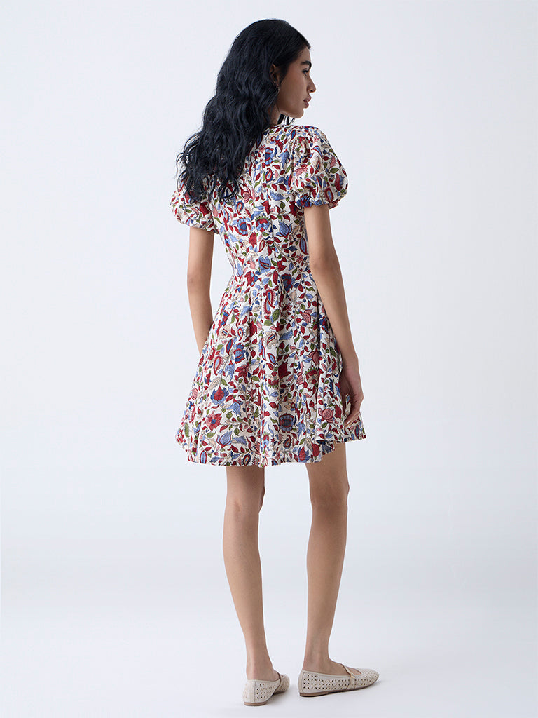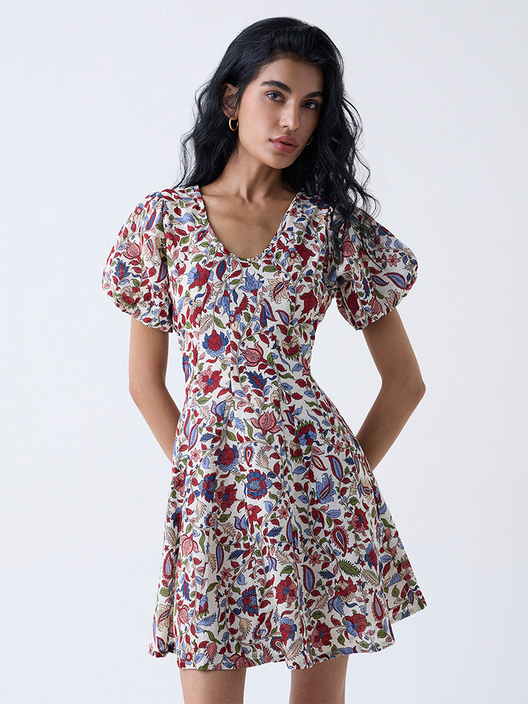 Bombay Paisley Multicolour Floral Cotton A-Line Dress