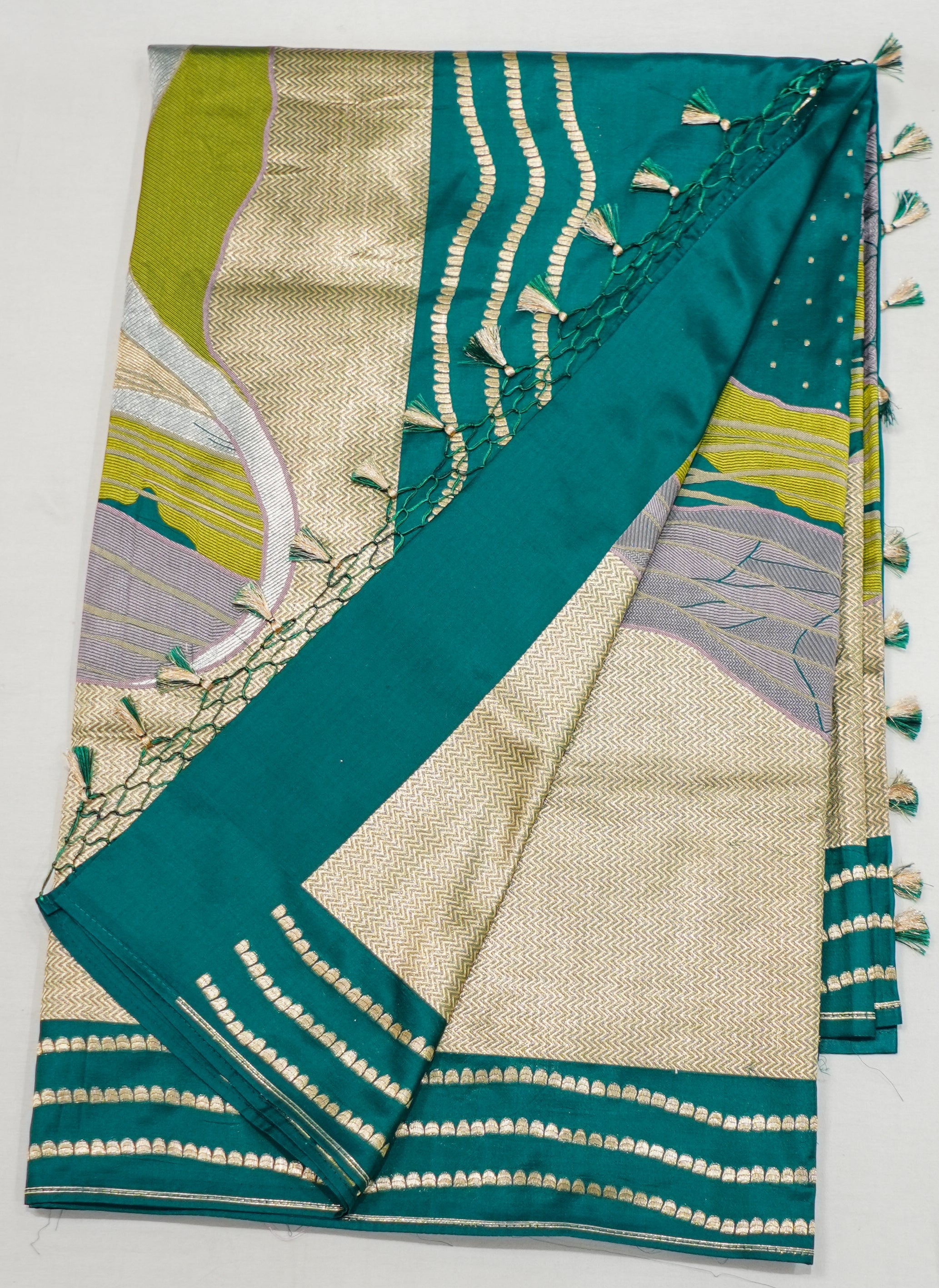 Drape yourself in timeless elegance with this exquisite Bottle Green Banaras Silk Handwoven Saree. Crafted from premium silk using traditional handweaving techniques, this saree showcases the rich heritage of Banaras craftsmanship. The deep bottle green hue exudes sophistication and pairs beautifully with any occasion, from festive celebrations to formal gatherings. Each piece is a testament to skilled artisans who pour their expertise into creating authentic, luxurious textiles. Perfect for those who appreciate fine craftsmanship and want to make a graceful statement with their ethnic wear.