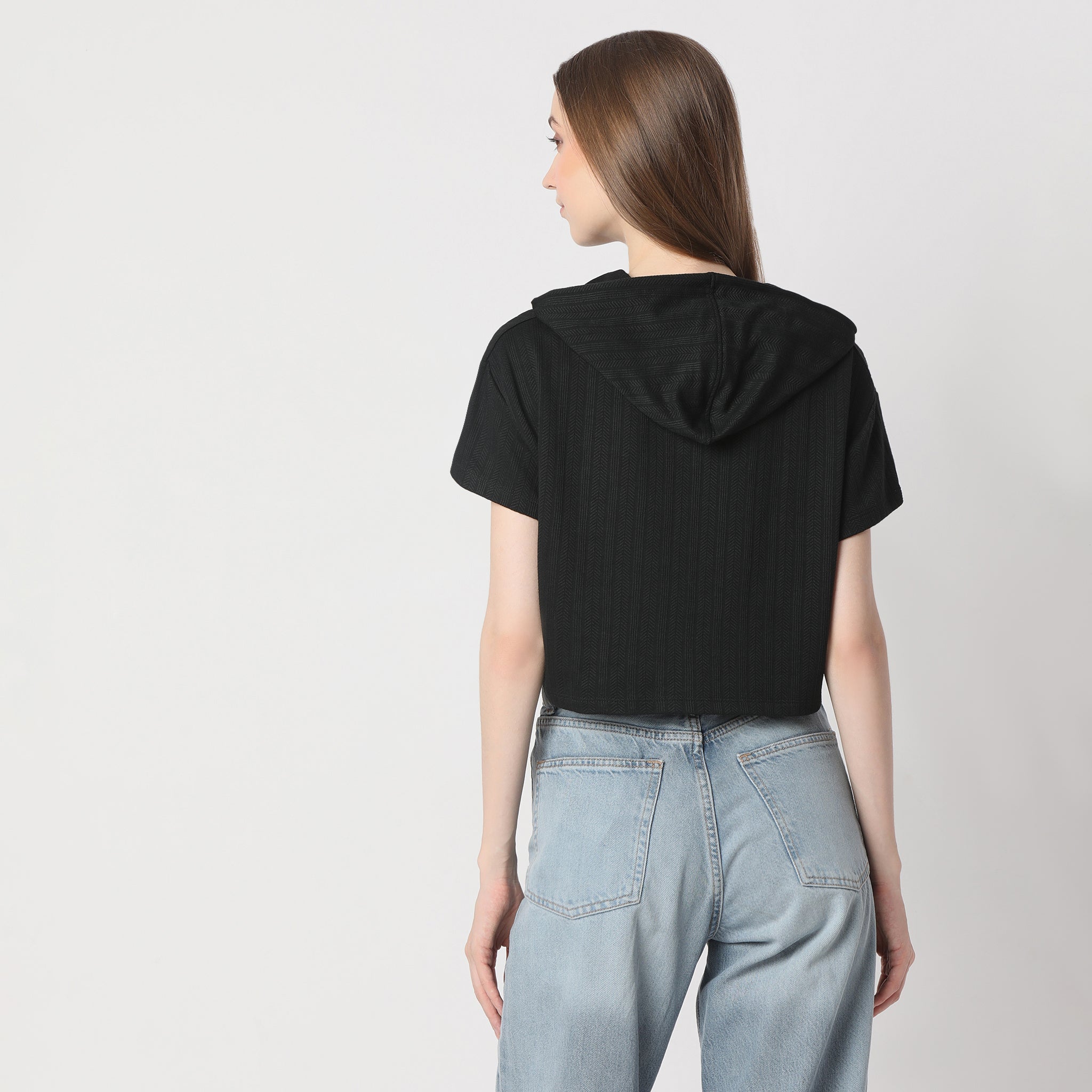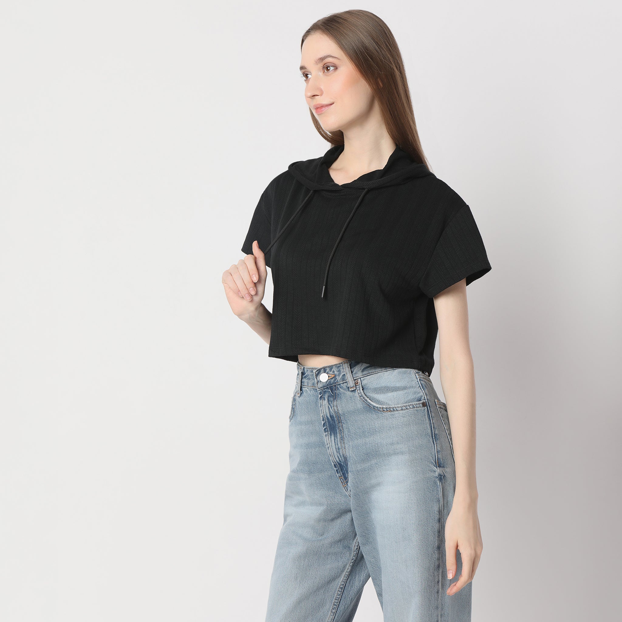 Boxy Fit Short Sleeve Hoodie Crop T-Shirt