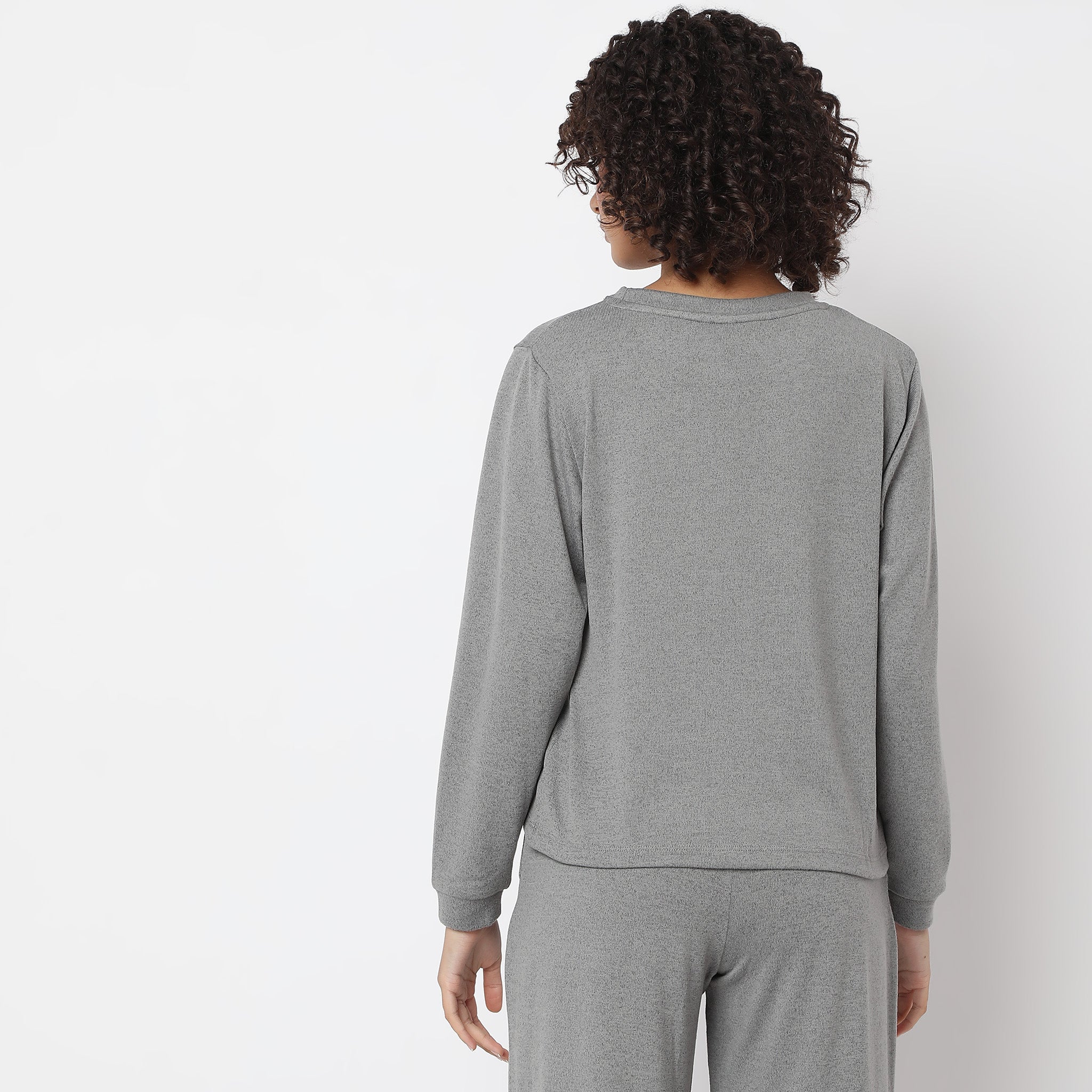 This solid pattern top has a round neck and full sleeve. Made from polyester, it is soft and comfortable to wear.