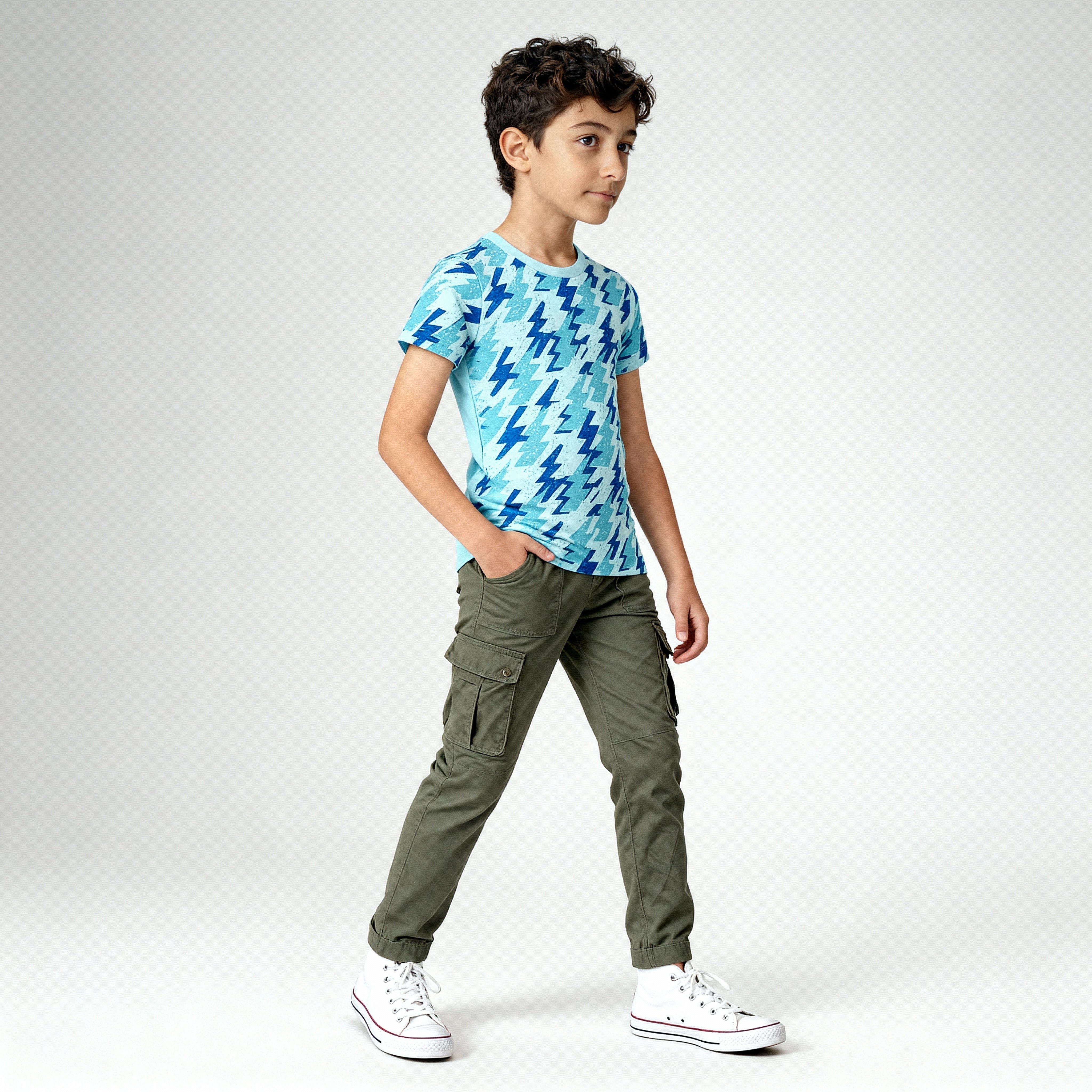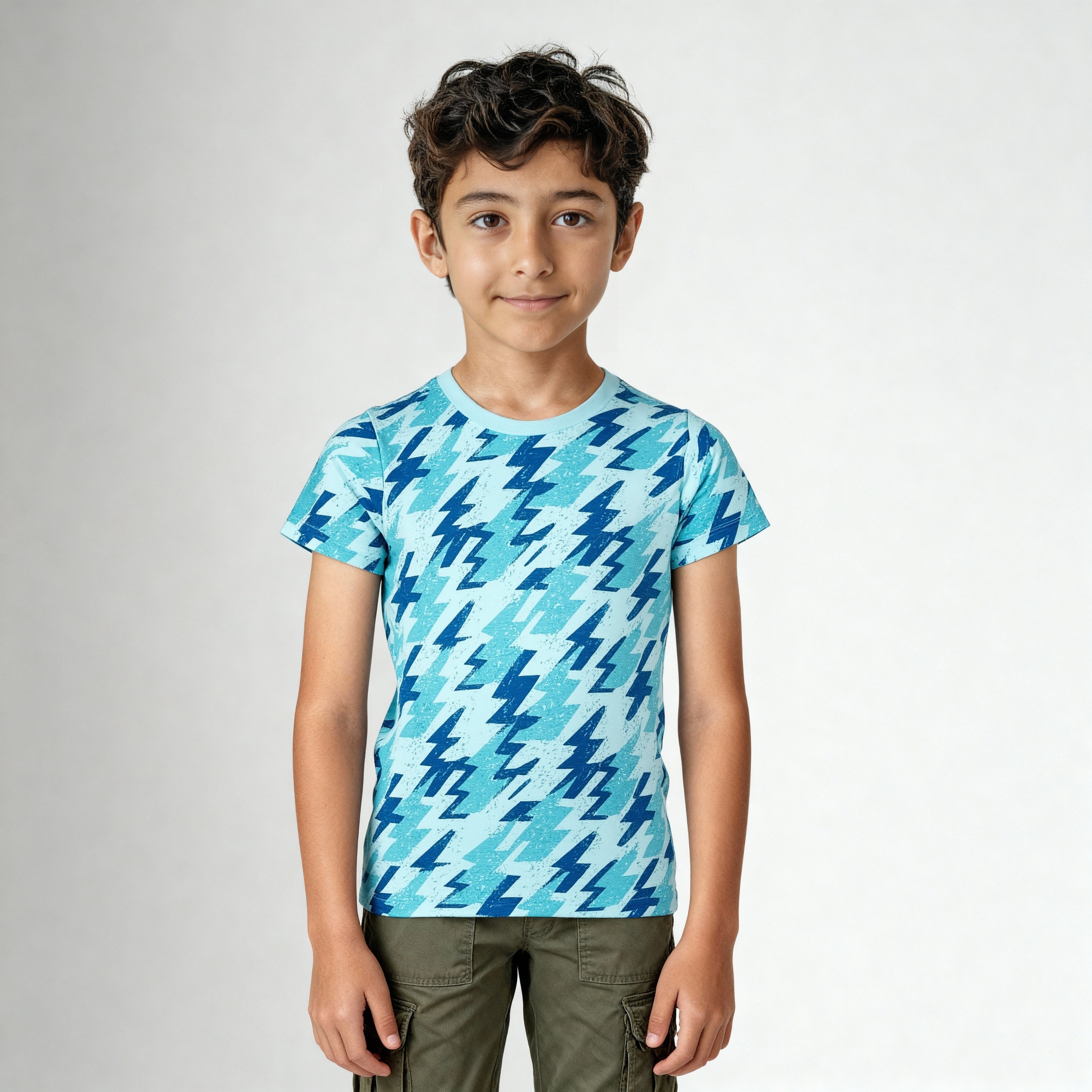 Introducing the Boys Cotton Crew Neck Graphitee T-Shirt, a perfect blend of comfort and style for your young ones. Made from soft, breathable cotton, this t-shirt features an eye-catching all-over print that adds a fun twist to everyday wear.