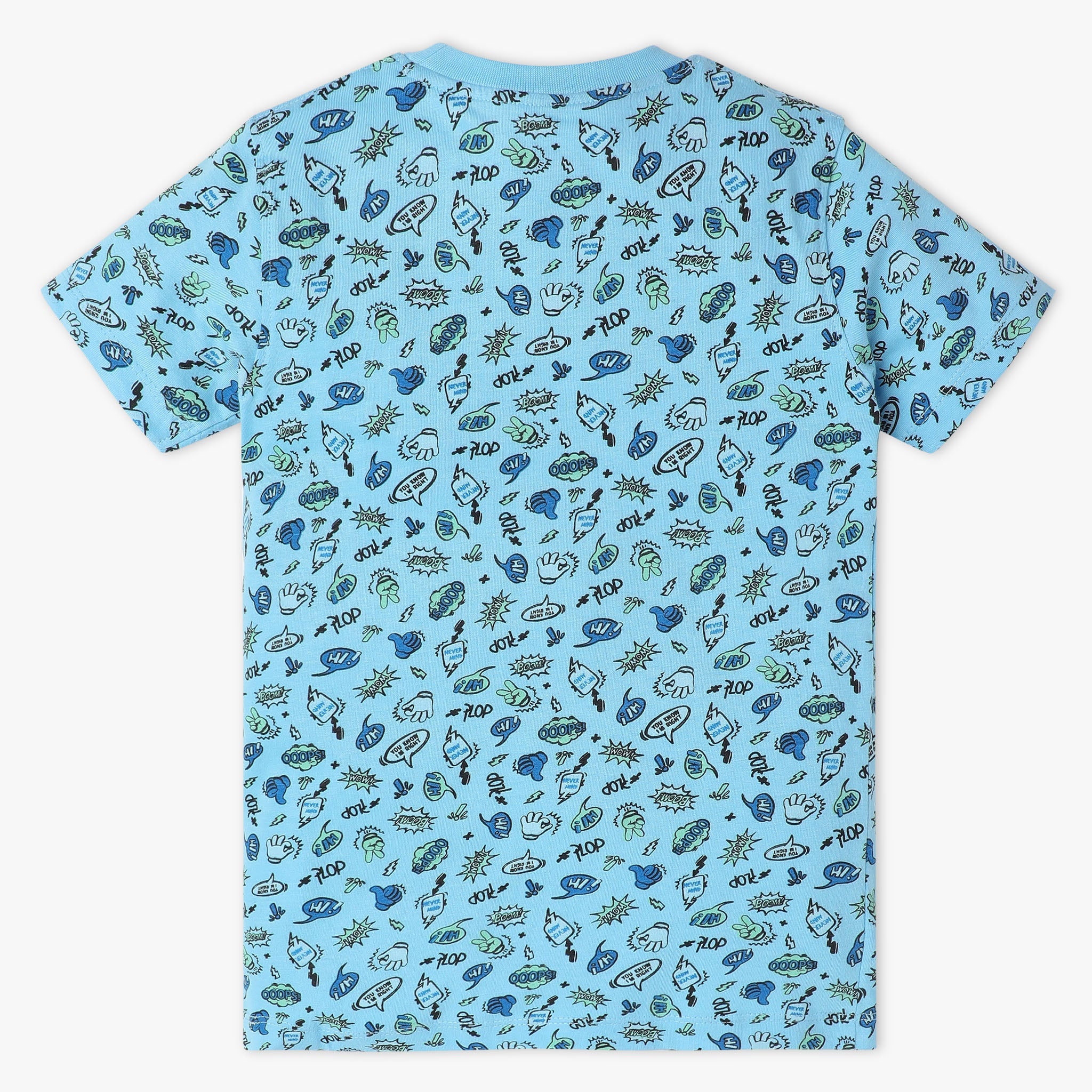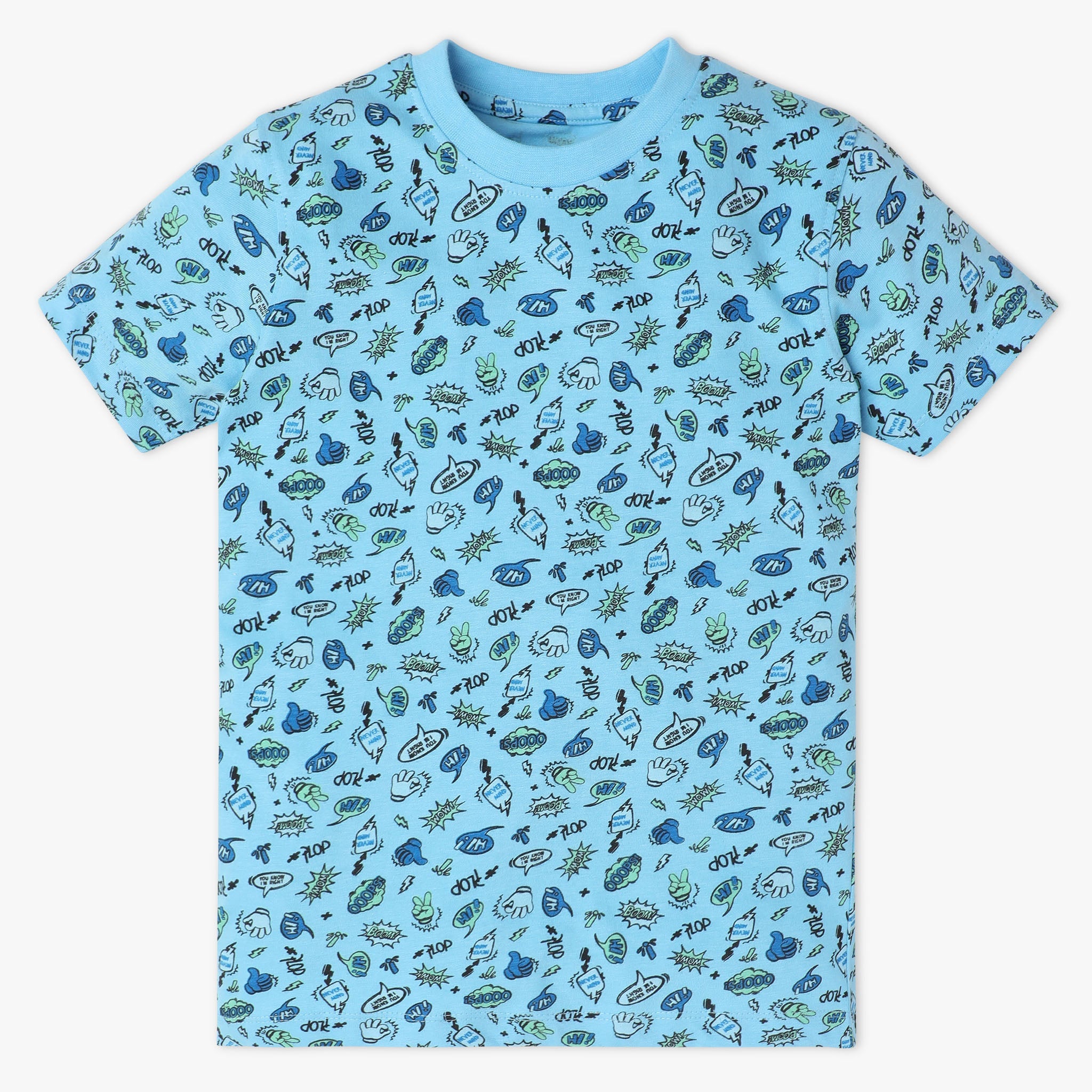 Boys Crew Neck Half Sleeve Sleep Set All Over Print Snooze T-Shirt And Short