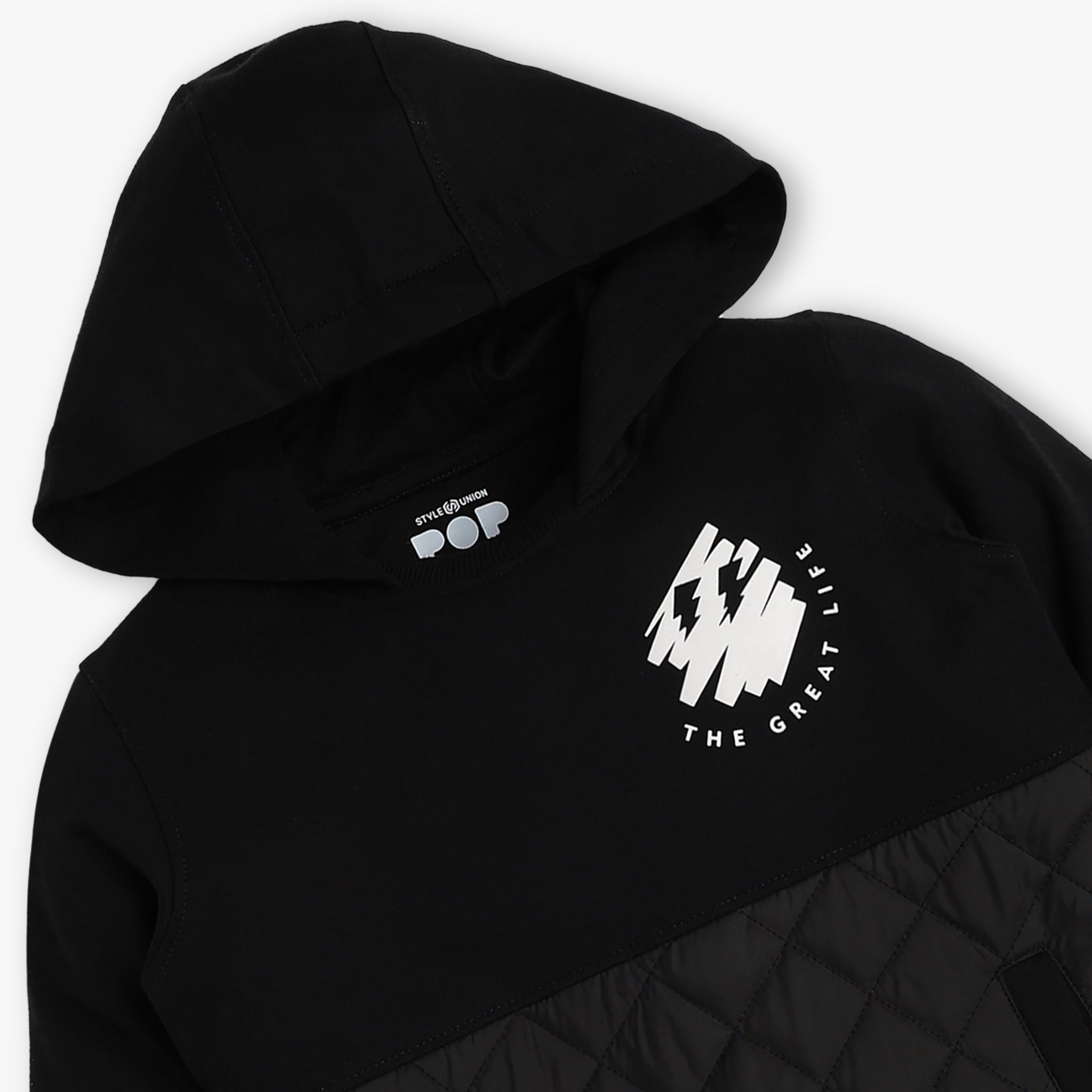 Experience the perfect blend of comfort and style with our Boys Pop Sweat Tee. Crafted from a soft cotton polyester blend, this tee offers a cozy feel while ensuring durability and easy maintenance. The hoodie design adds a trendy touch, making it a versatile piece for any casual outing.