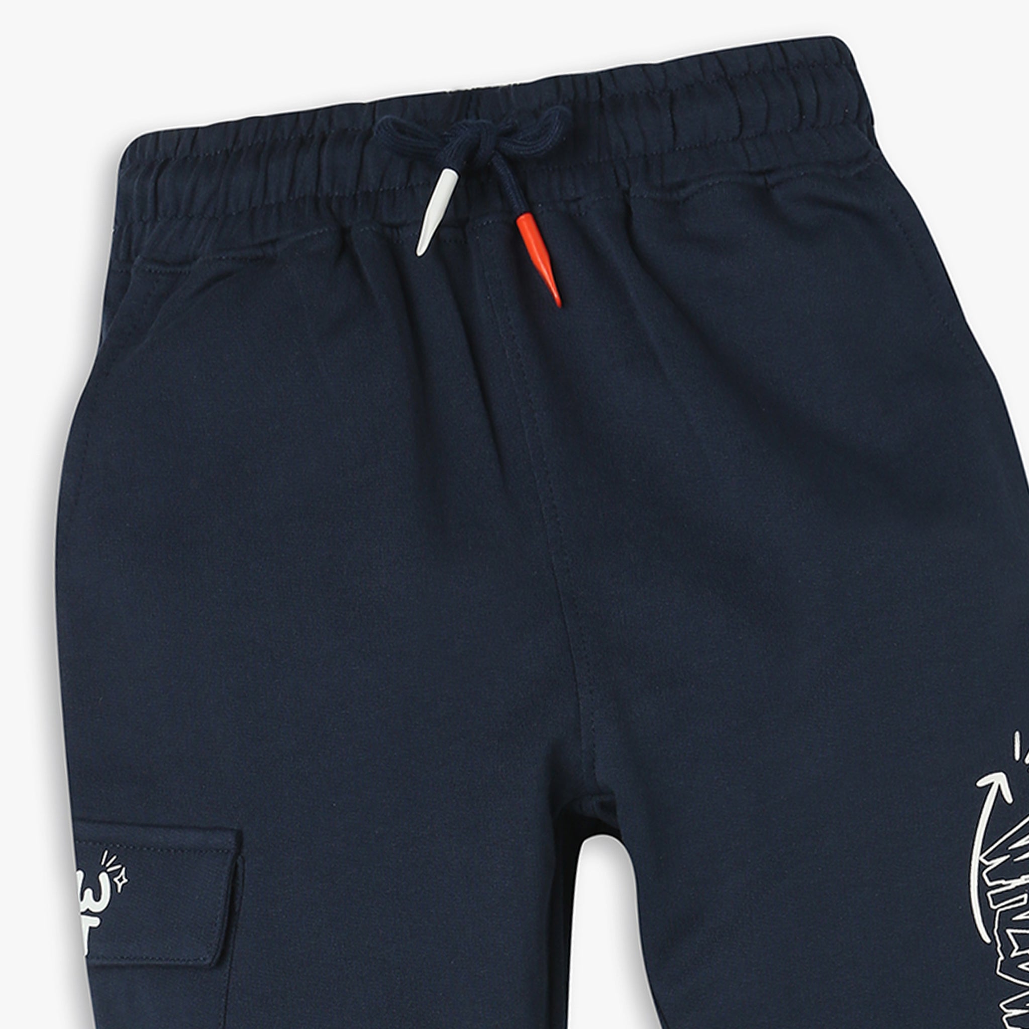 These world wide music theme, cut and sew pattern regular fit trackpants has mid rise waist. Made from cotton, your kid's feel comfortable wearing the product.