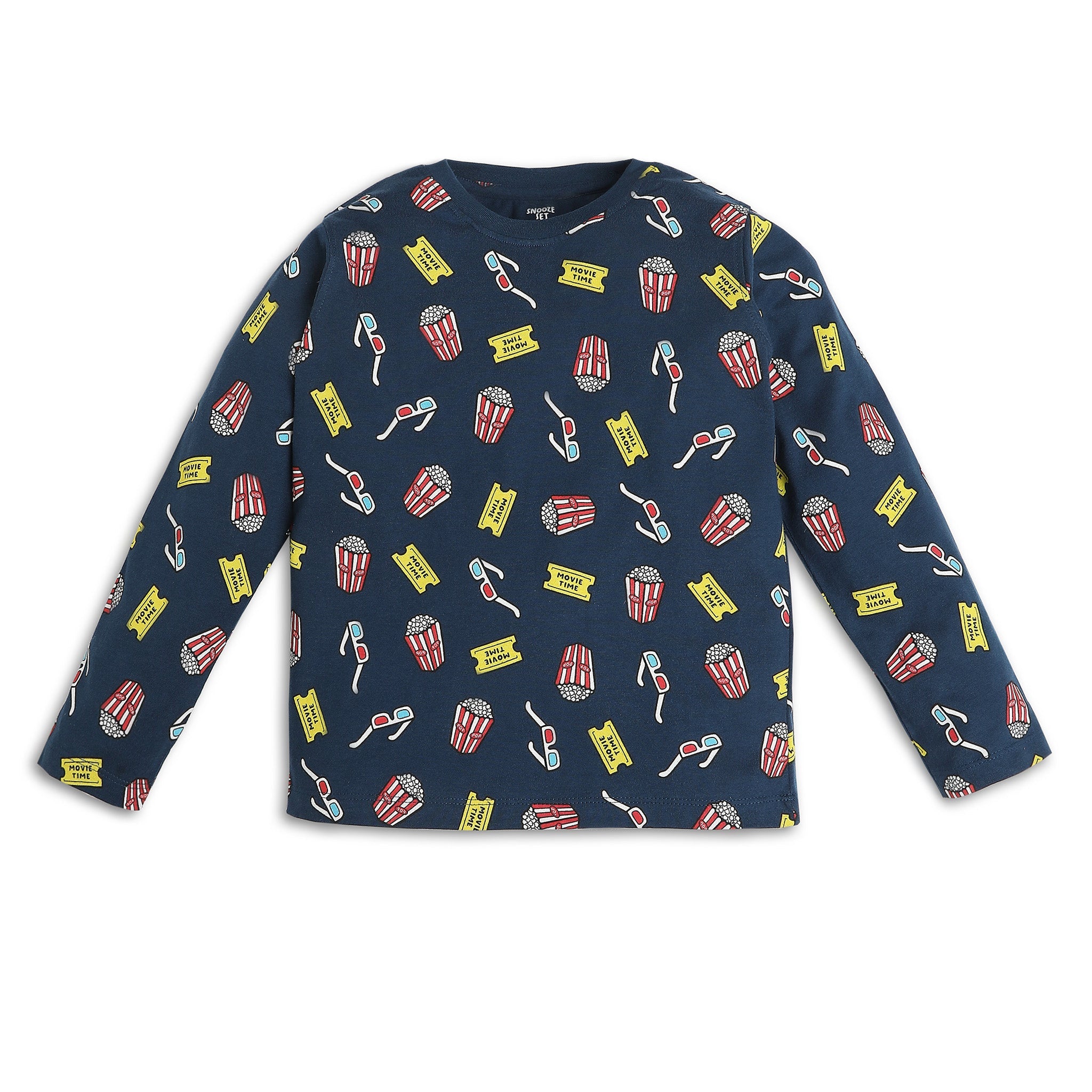 These printed pattern t-shirt with trackpant sleepwear set has crew neck and full sleeve. Made from cotton, your kid's feel comfortable wearing the product.