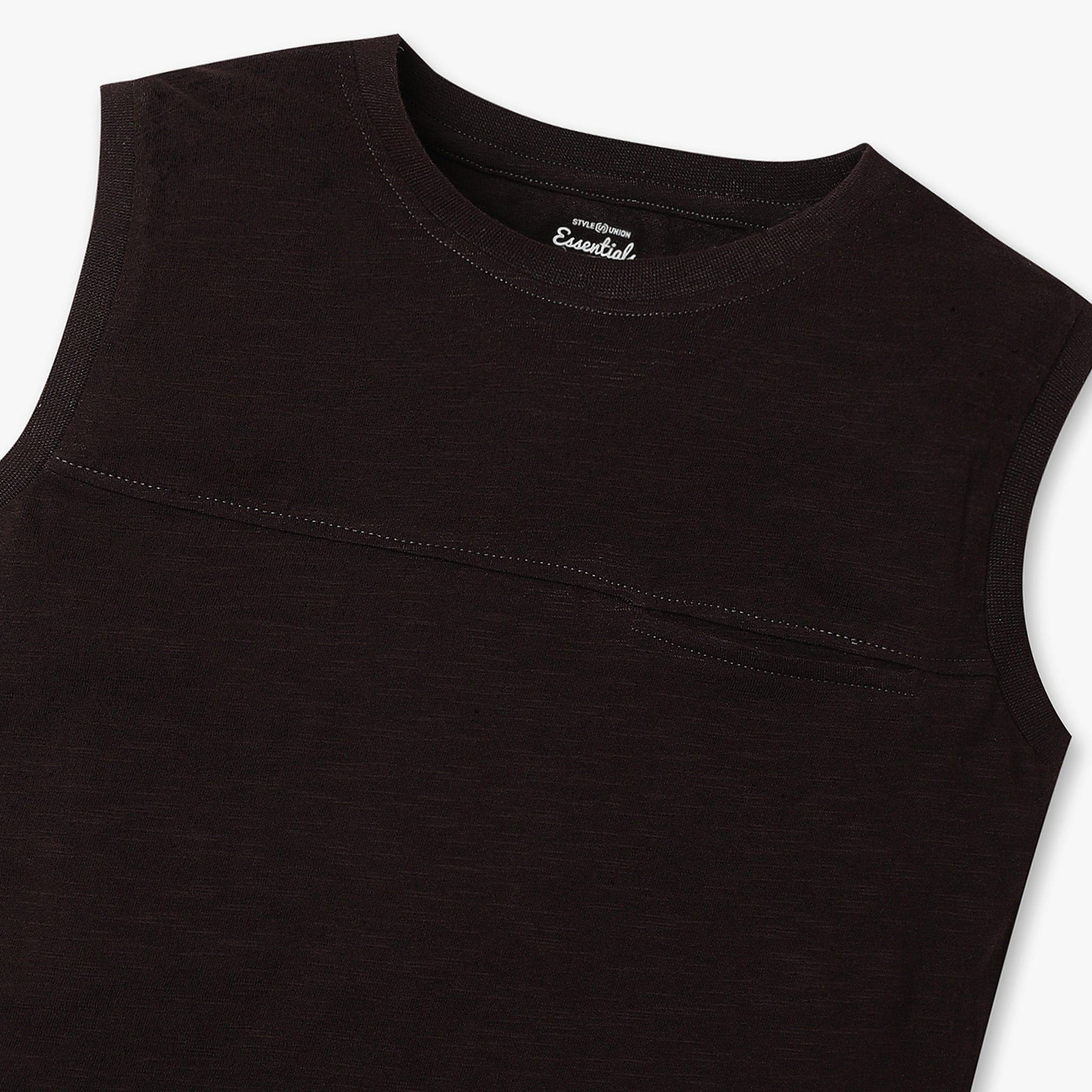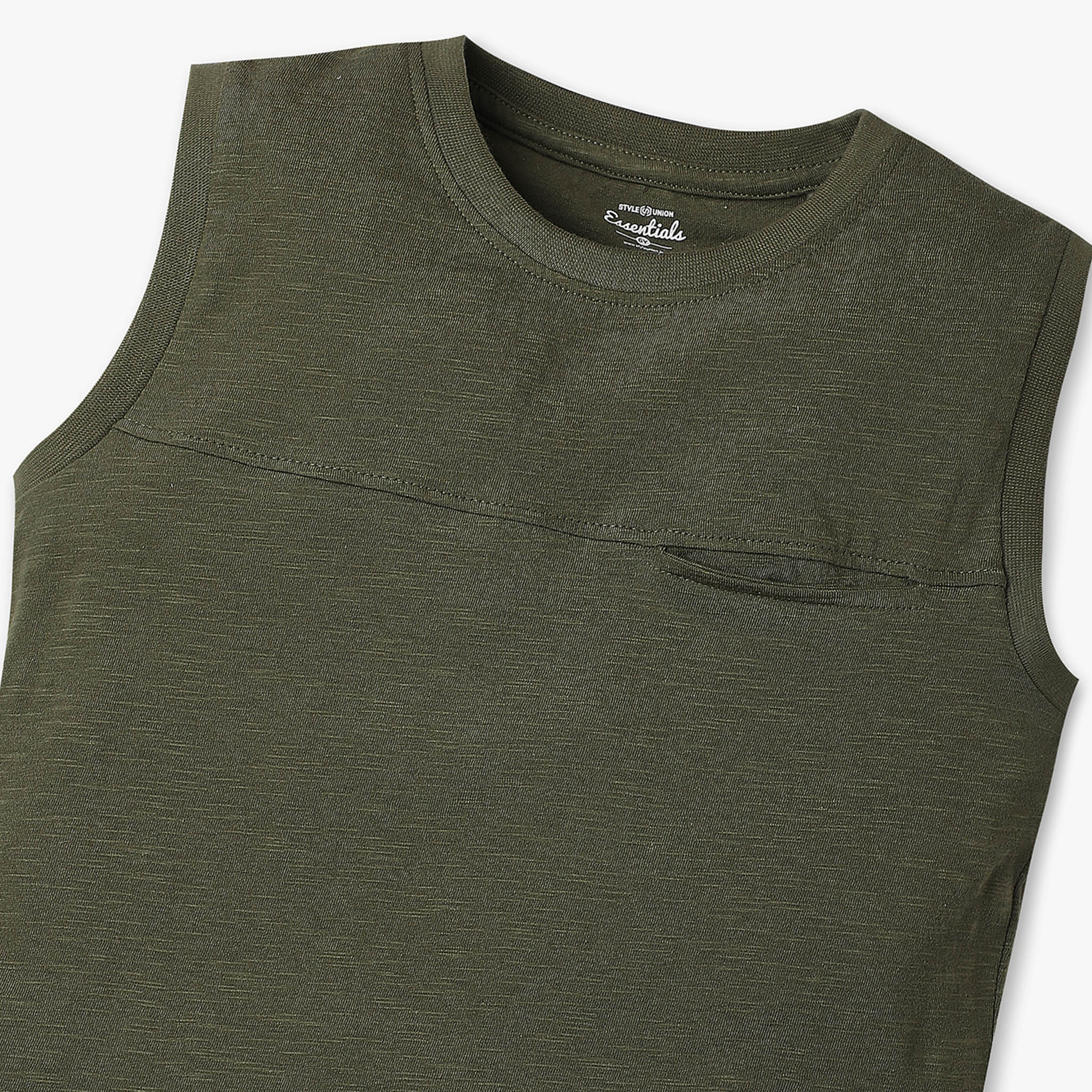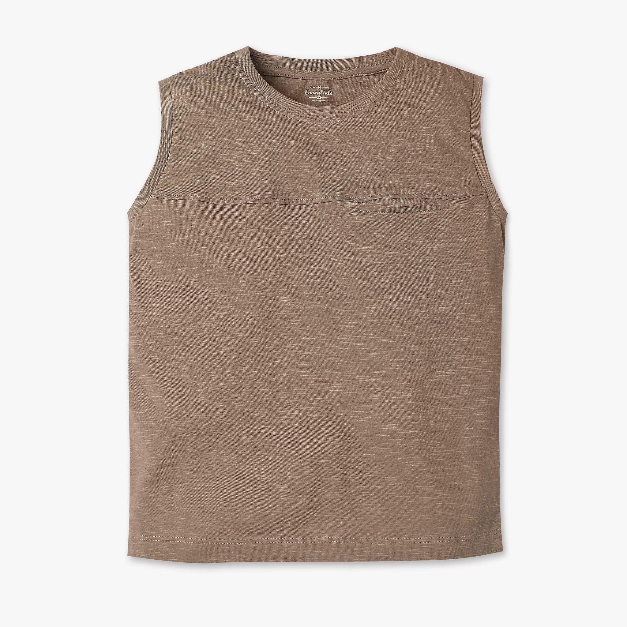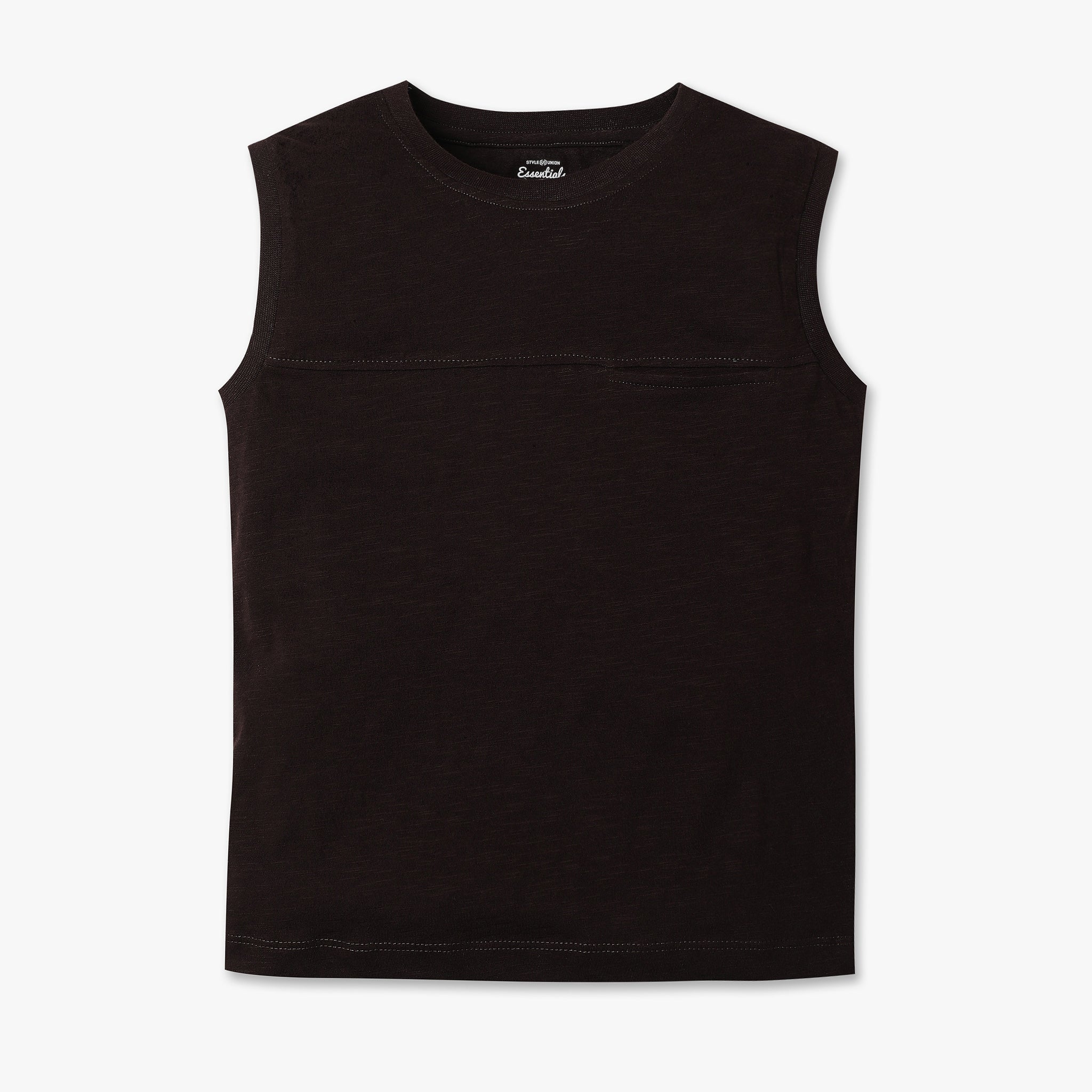 Boys Solid Crew Neck Sleevless Core T-Shirt