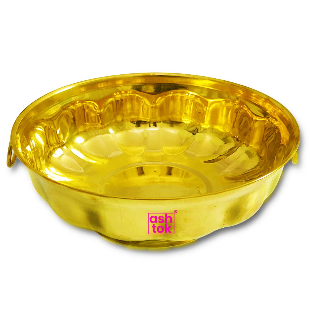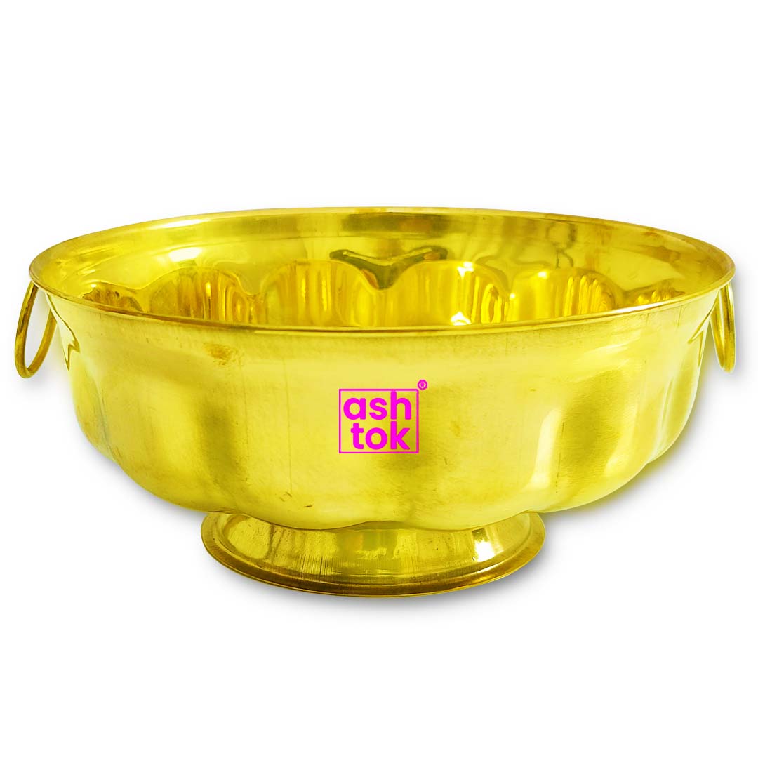 Ashtok Pure Brass Bowl with handles is made and manufactured with 100% Pure Brass, thin sheet, a product with digital real cutting and embossing with a high level of accuracy, heavy gauge parath which is MAT finish polish, Highly durable, elegant and wonderful for any Kitchen, home decor, easy to wash and clean. This Premium export quality product ensures the product's long life. It is a wonderful House warming Gift, Anniversary Gift, Birthday Gift, and Gift for any occasion.