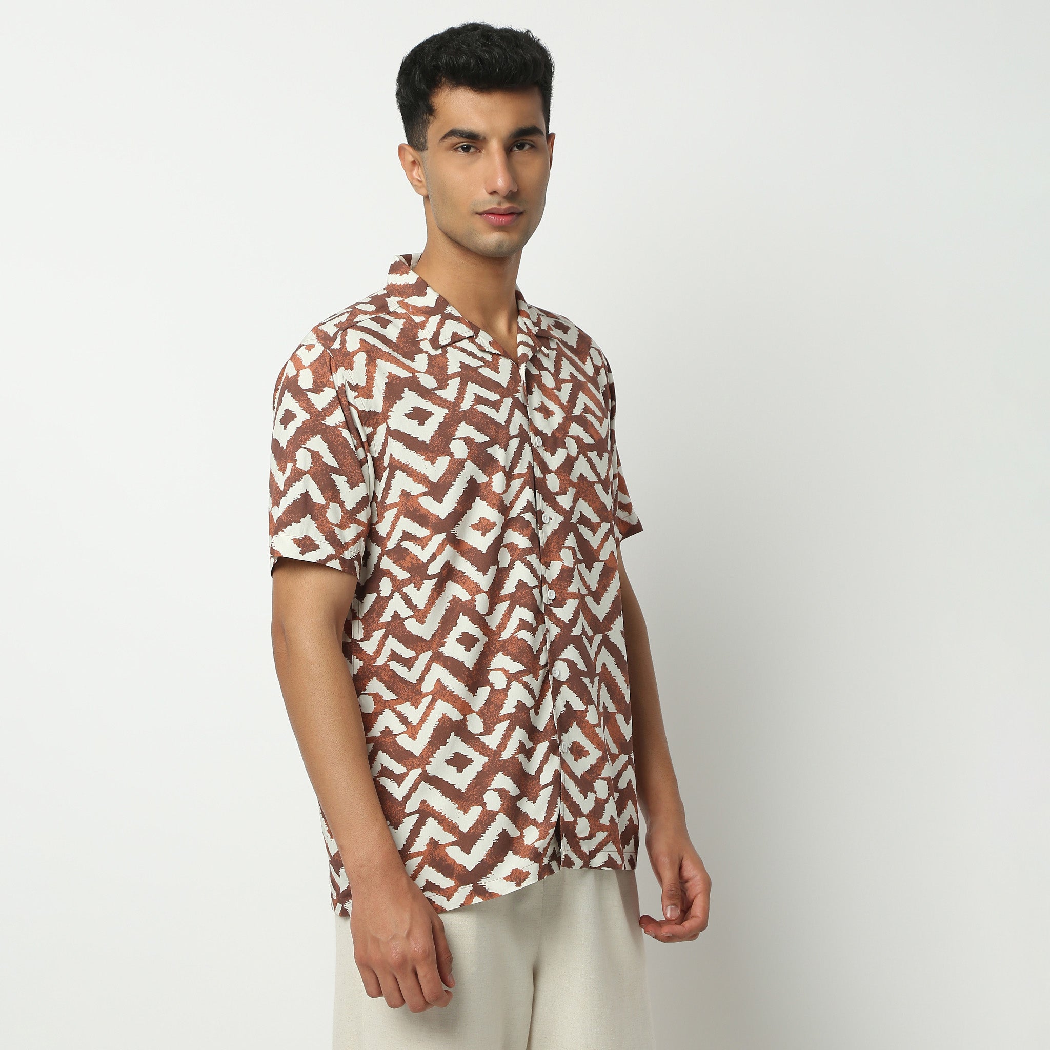 Camp Collar Half Sleeve Short Length Relaxed Fit Cuban Printed Shirt