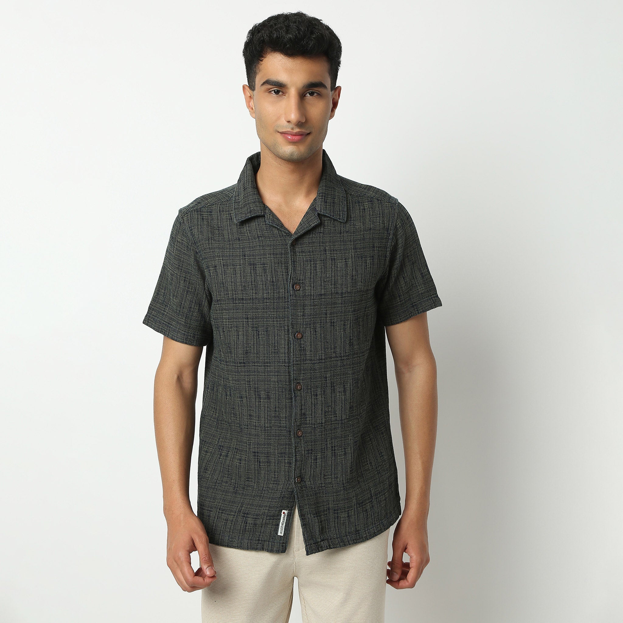 Camp Collar Half Sleeve Yarn Dyed Textured Mood Shirt