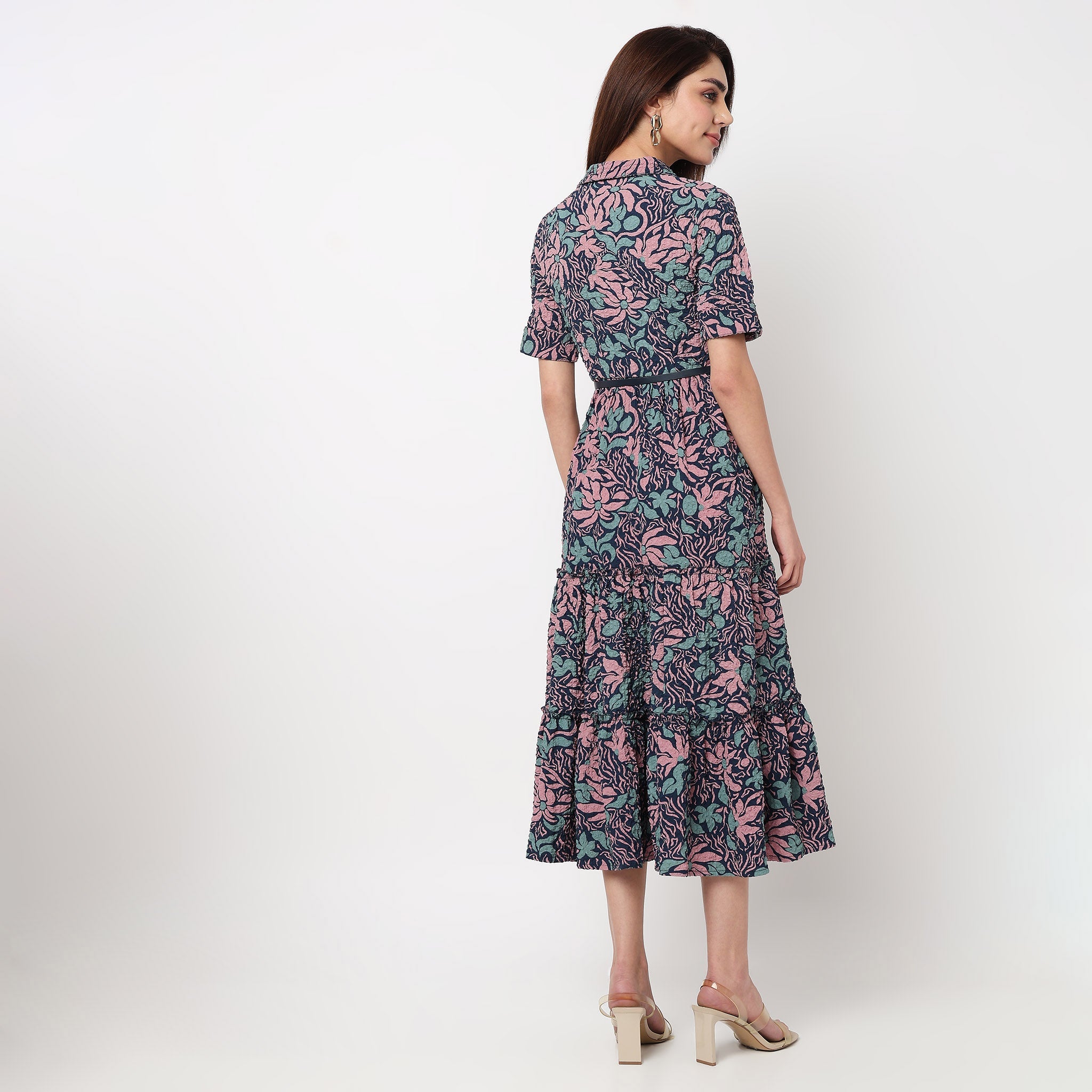 Elevate your wardrobe with our Camp Collar Tiered Shirt Dress, designed for women who appreciate style and comfort. Crafted from soft woven polyester, this dress features a playful printed pattern and a flattering flare fit that enhances your silhouette.