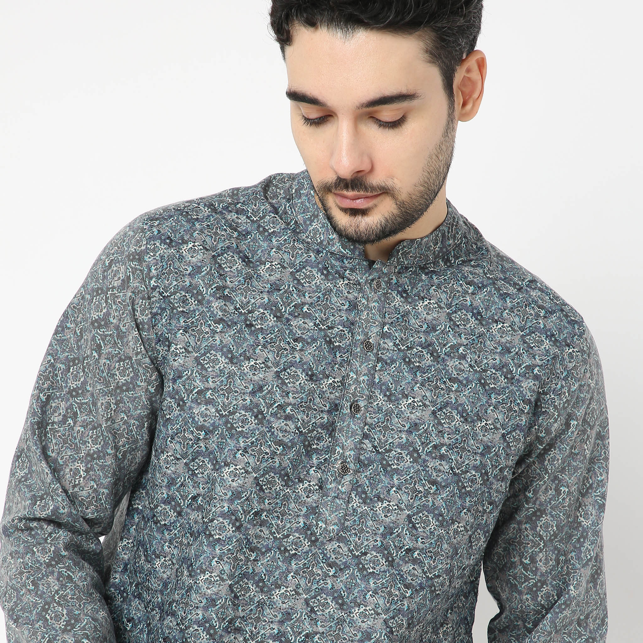 This printed pattern kurta has a mandarin collar and full sleeve. Made from cotton polyester, it is soft and comfortable to wear.