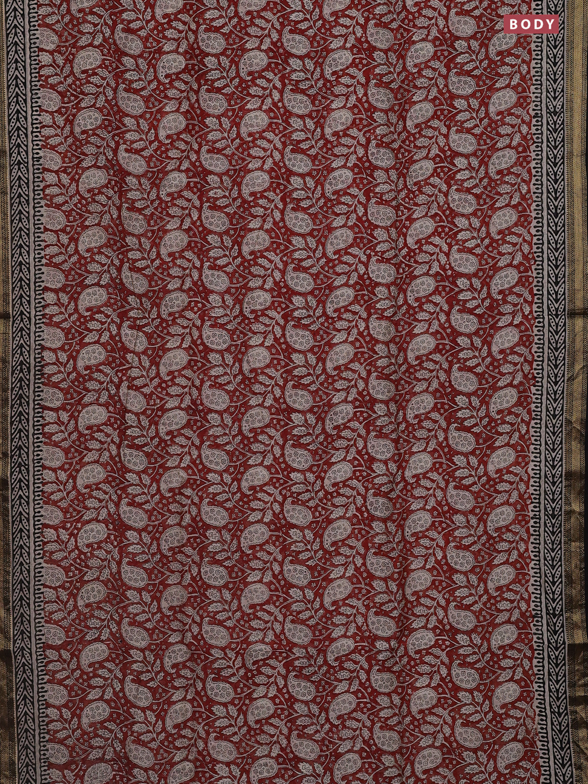 Chanderi bagru saree maroon and black with allover kalamkari prints and mageshwari border