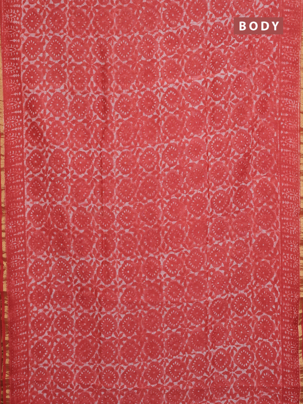 Chanderi bagru saree orange with allover dabu prints and small zari woven border