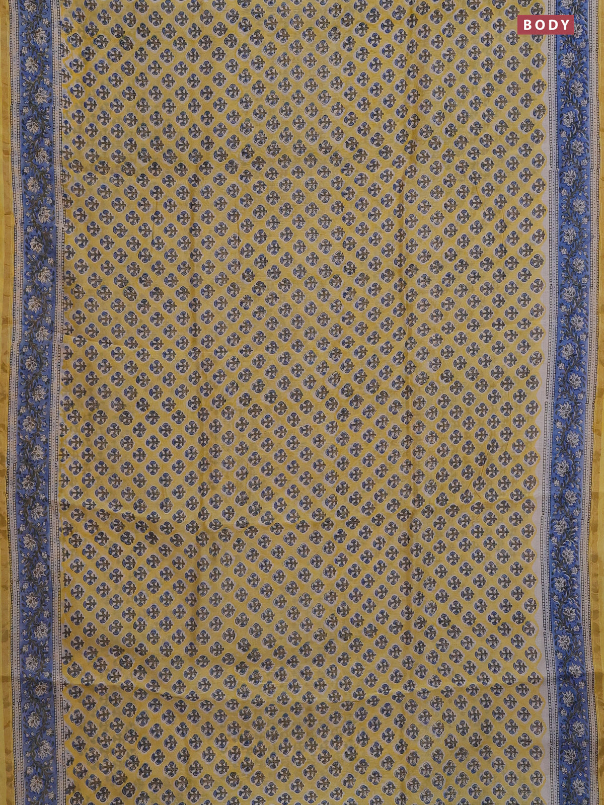 Chanderi bagru saree pale yellow and blue with allover floral butta prints and small zari woven border
