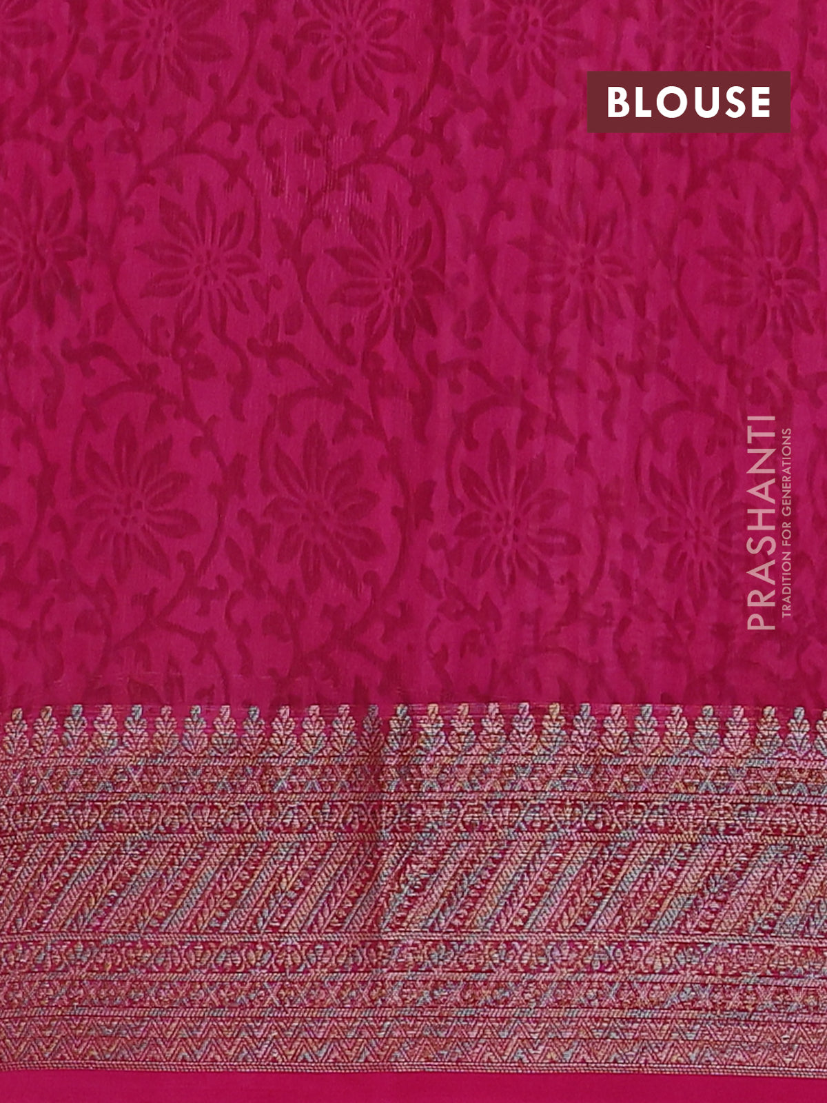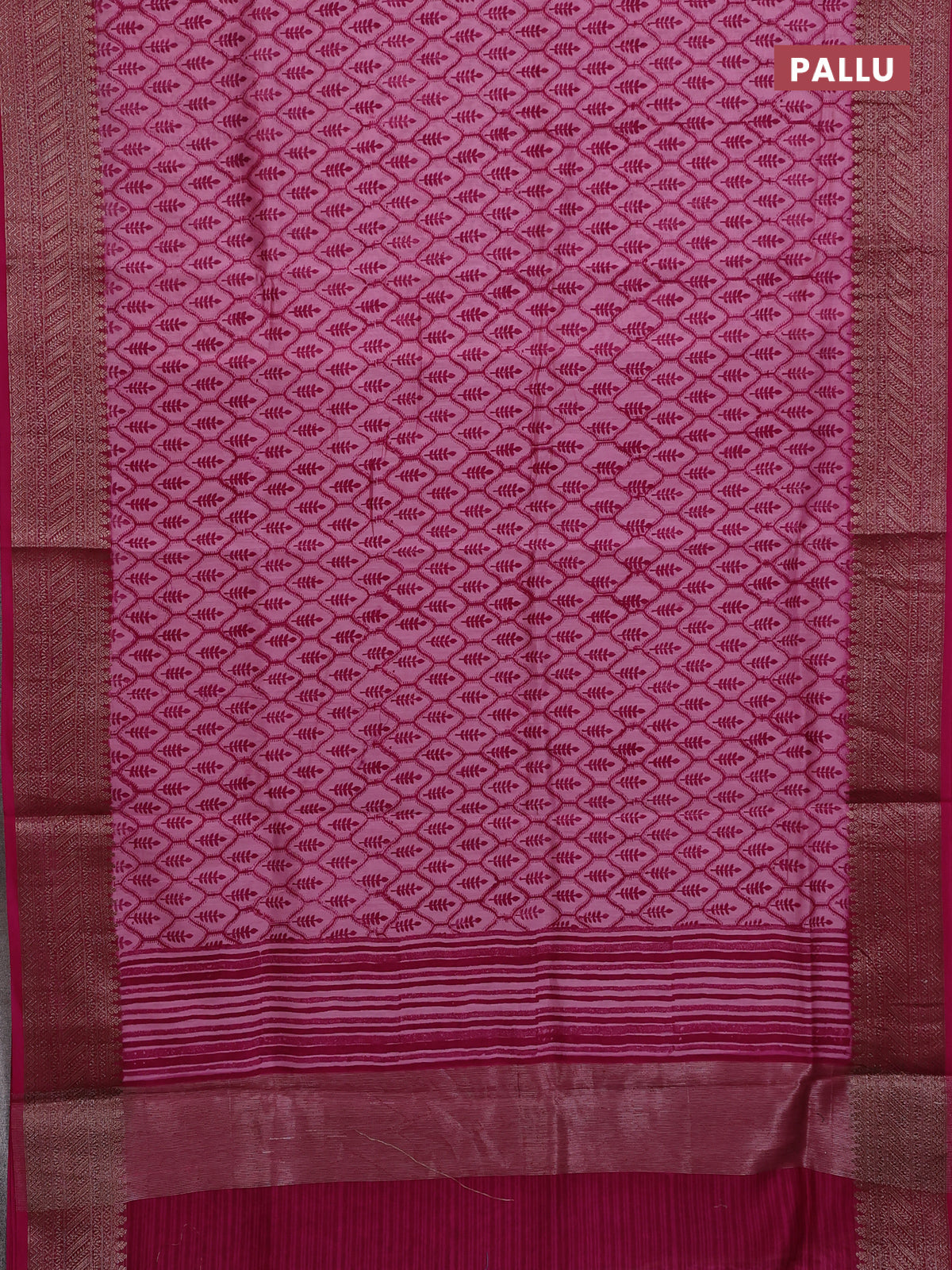 Chanderi silk cotton saree magenta pink with allover prints and banarasi style border
