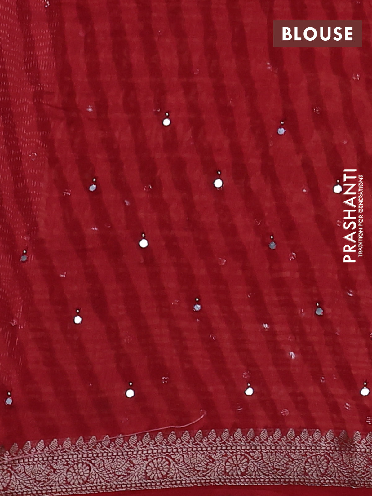 Chanderi silk cotton saree rustic orange and red with allover geometric prints & mirror work and woven border