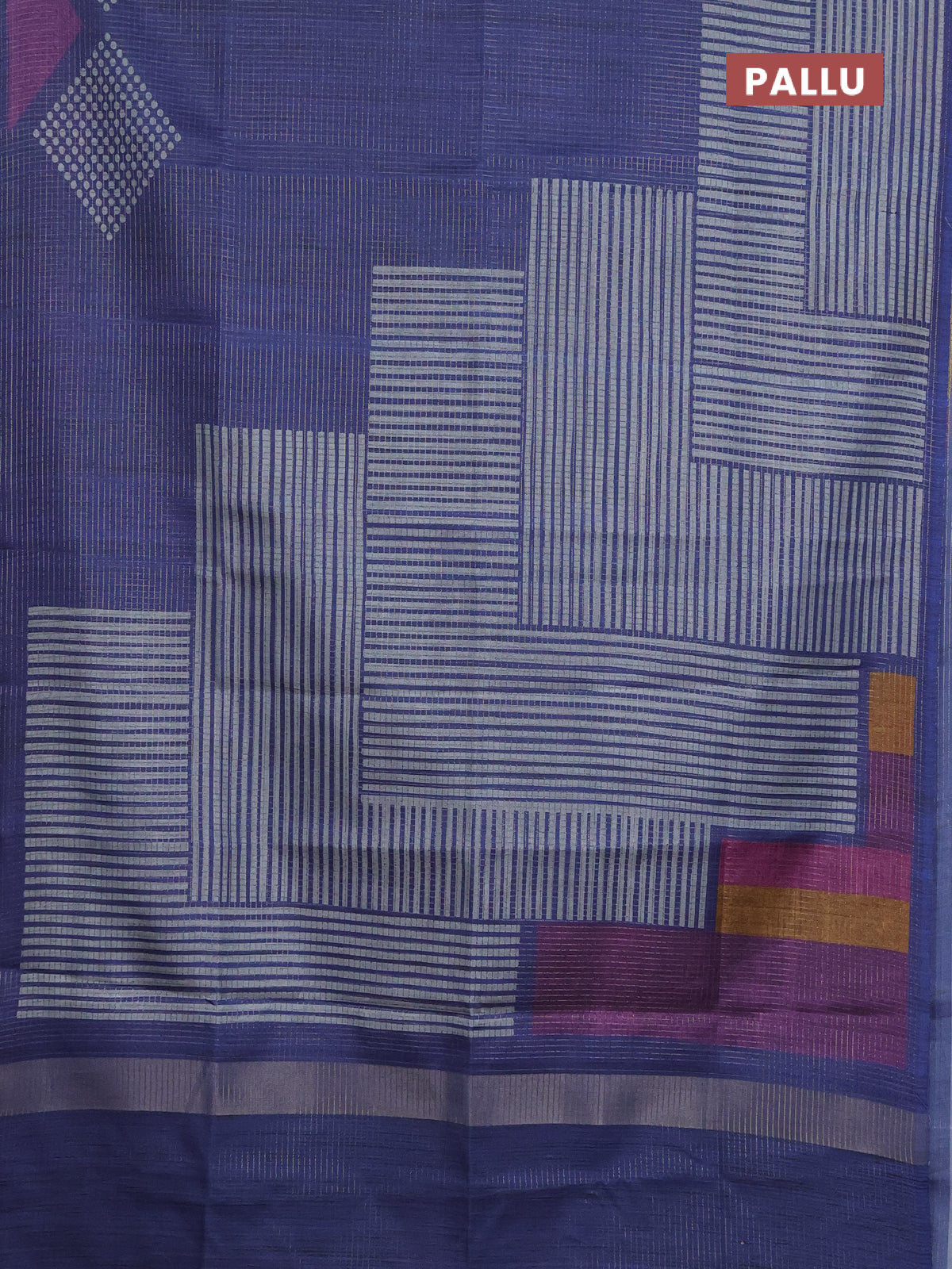Chappa saree blue and grey with allover small zari checked pattern and printed border
