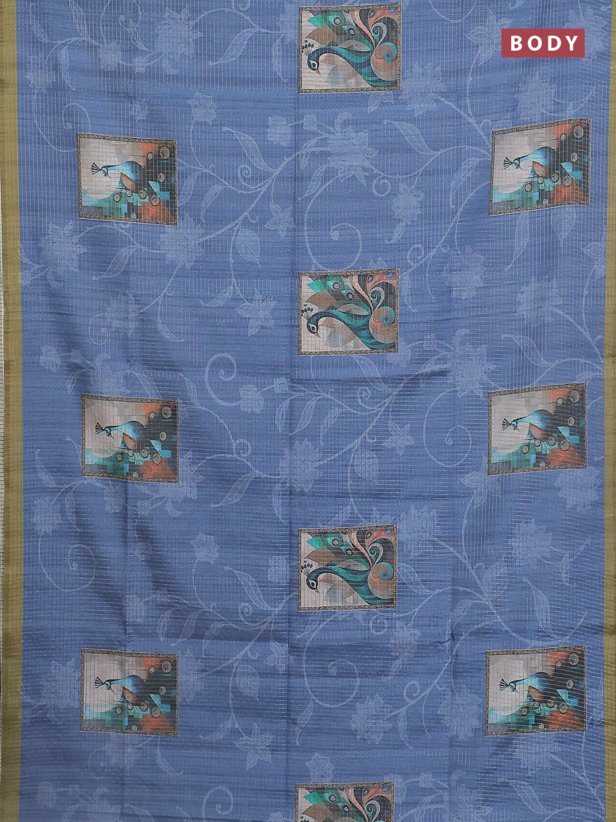 Chappa saree blue shade and mehendi green with allover zari checked pattern & digital prints and printed pallu