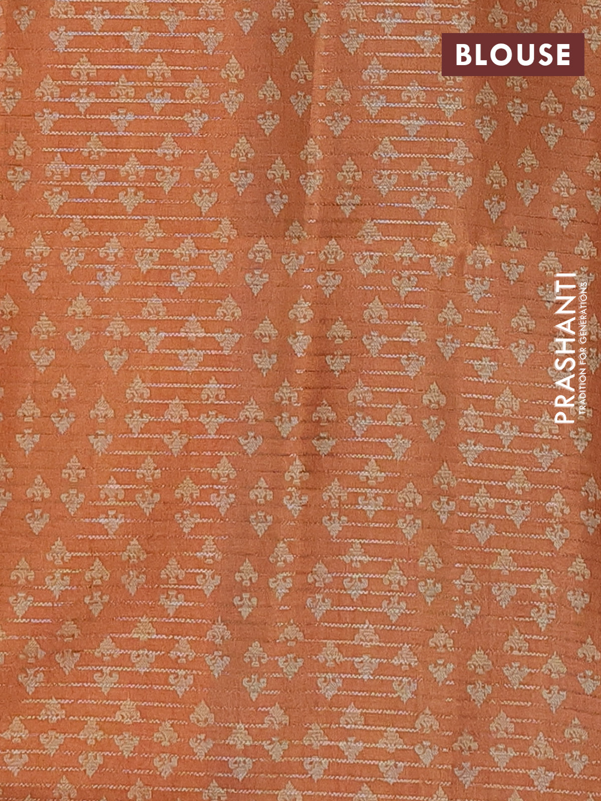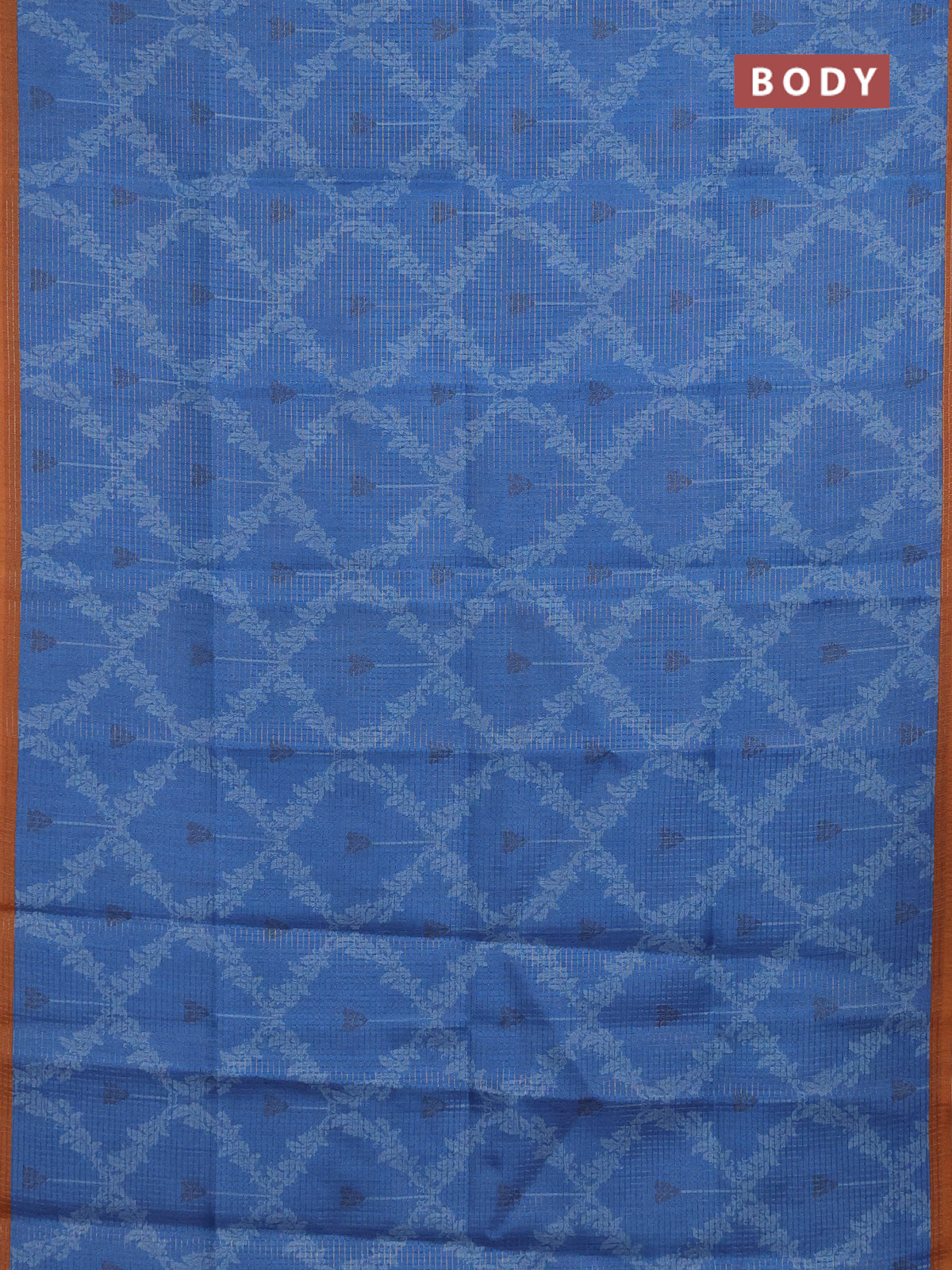 Chappa saree cs blue and orange with allover small zari checked pattern & prints and piping border
