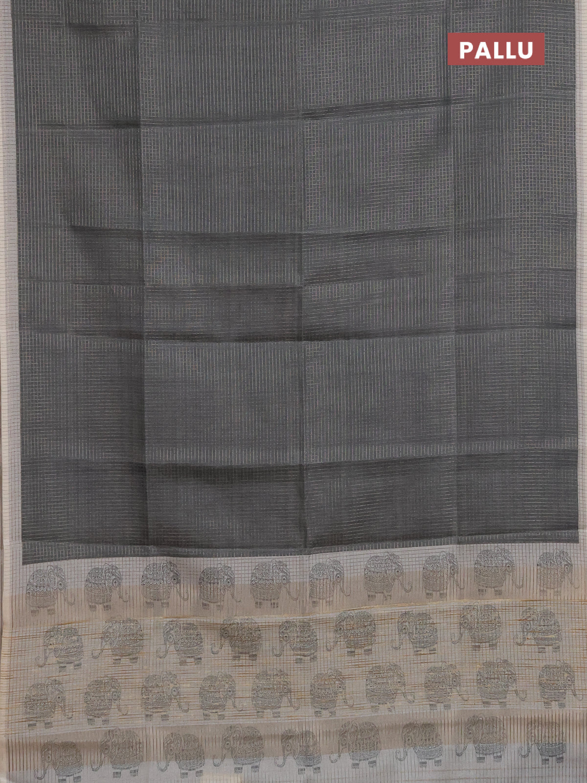 Chappa saree elephant grey and pastel grey with allover small zari checked pattern and elephant butta prints