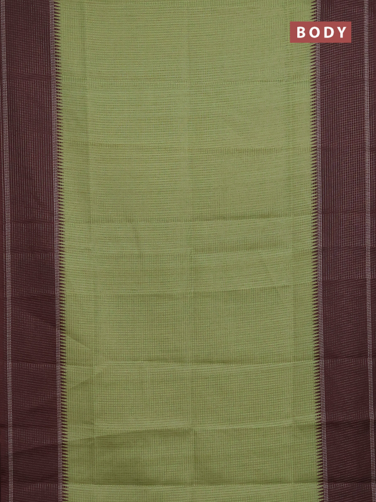 Chappa saree light green and brown with allover small zari checked pattern and temple design zari woven border