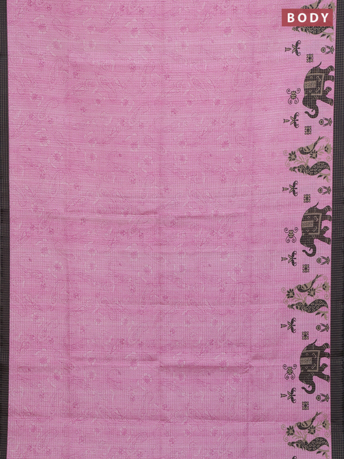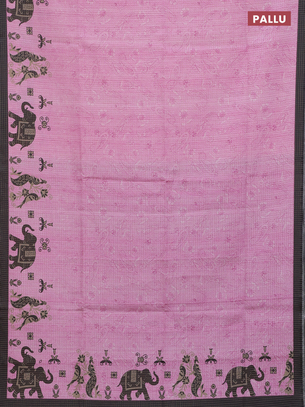 Chappa saree light pink and black with allover zari checked pattern and printed pallu