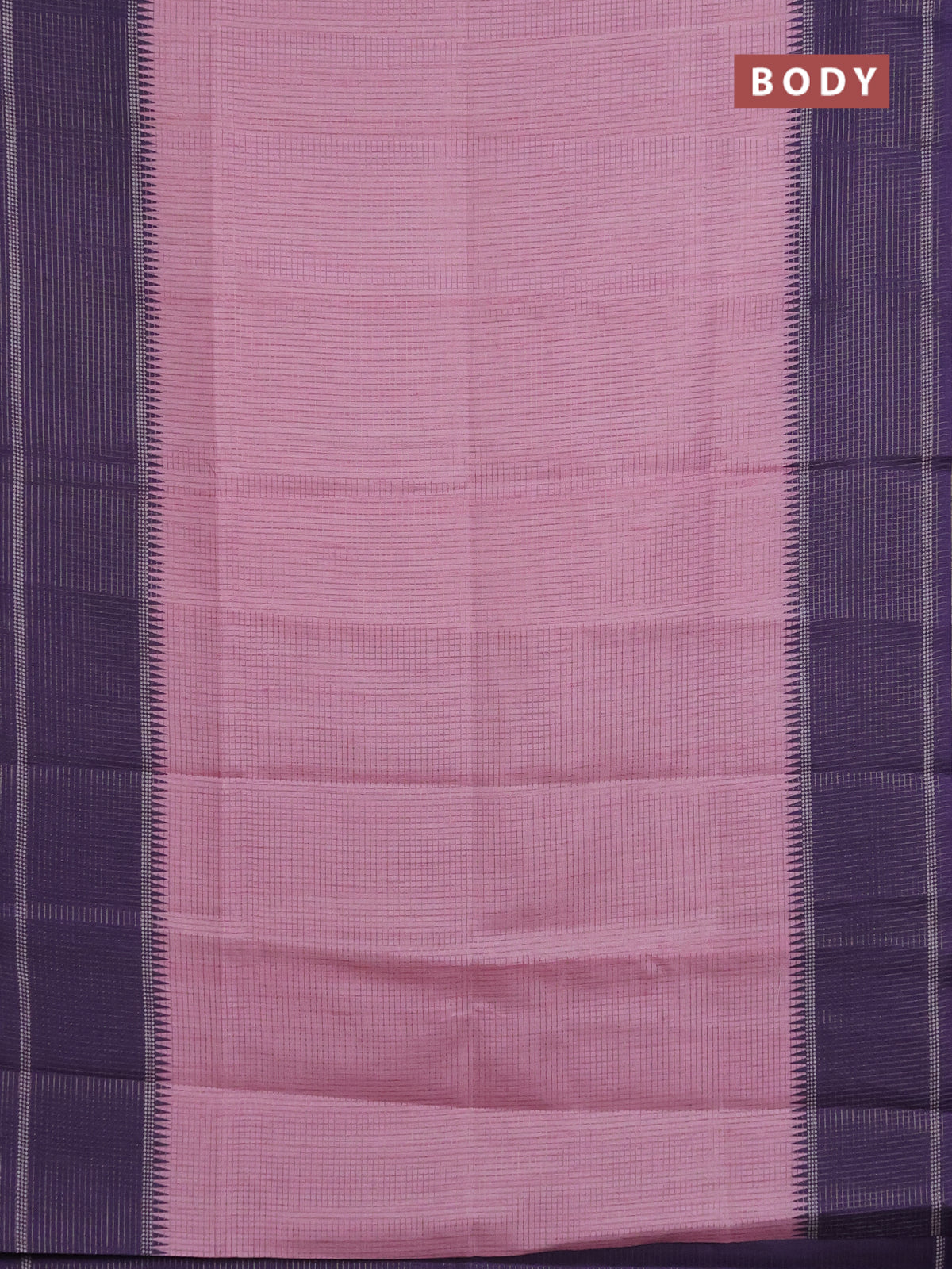 Chappa saree light pink and violet with allover small zari checked pattern and temple design zari woven border