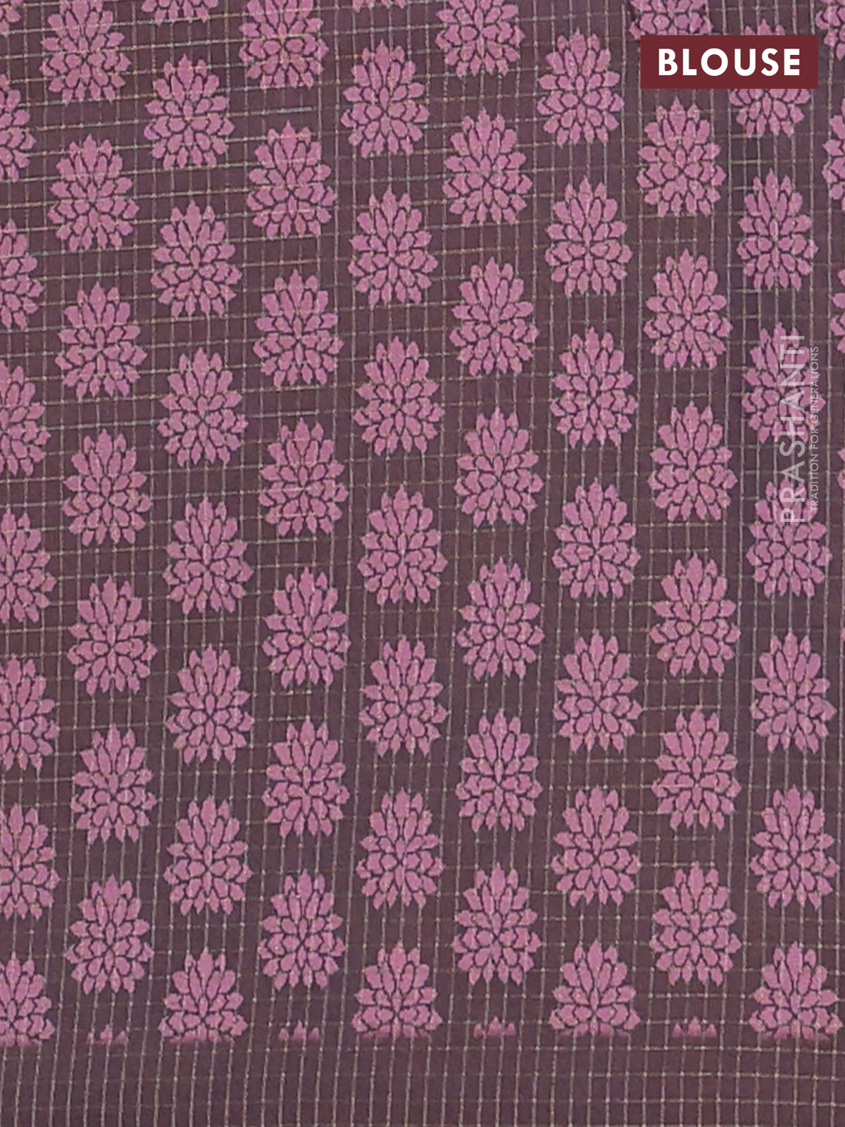 Chappa saree pastel pink and coffee brown with allover zari checked pattern and printed pallu