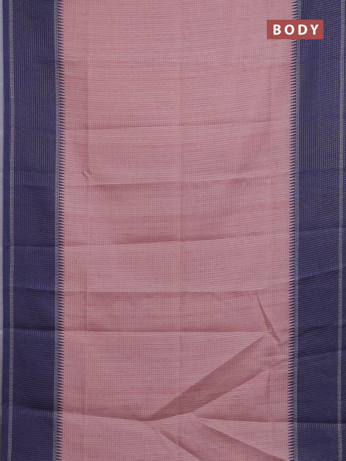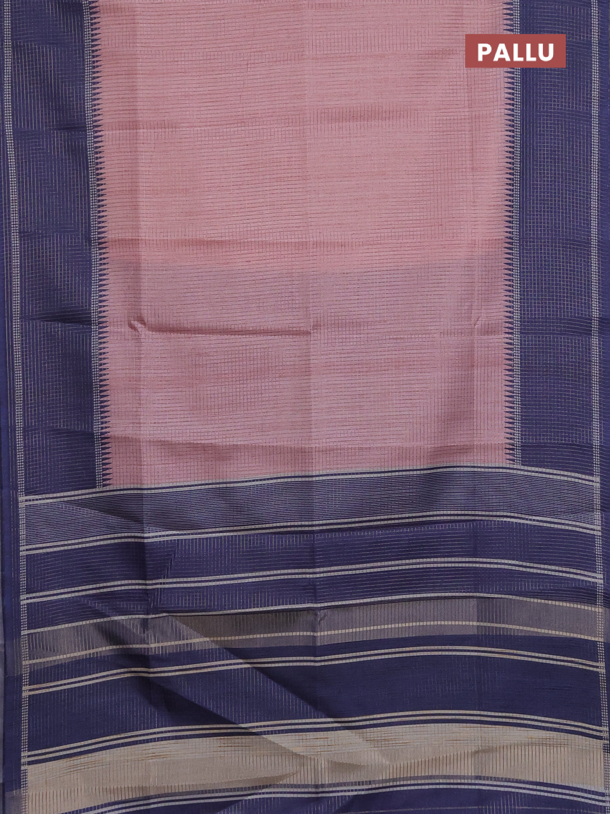 Chappa saree pastel pink and dark blue with allover small zari checked pattern and temple design zari woven border