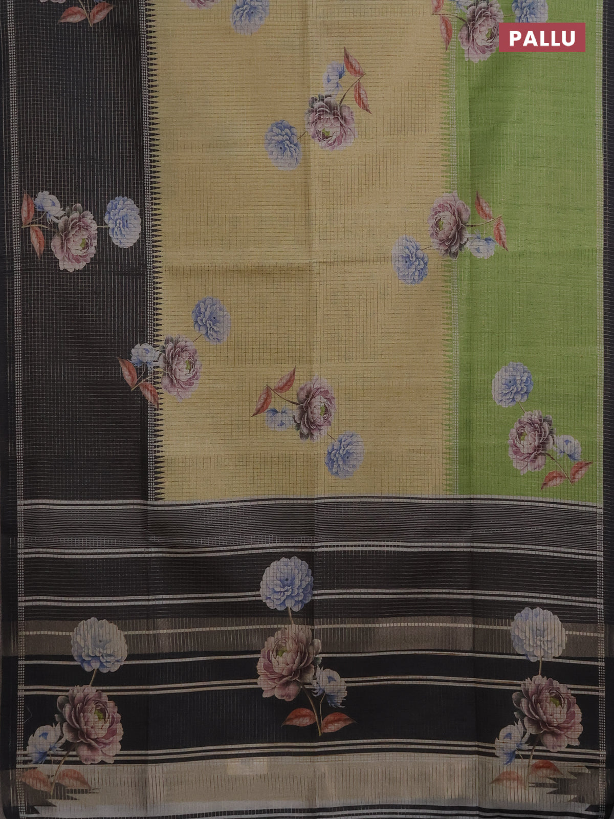 Chappa saree sandal and black with allover small zari checked pattern & floral digital prints and ganga jamuna border