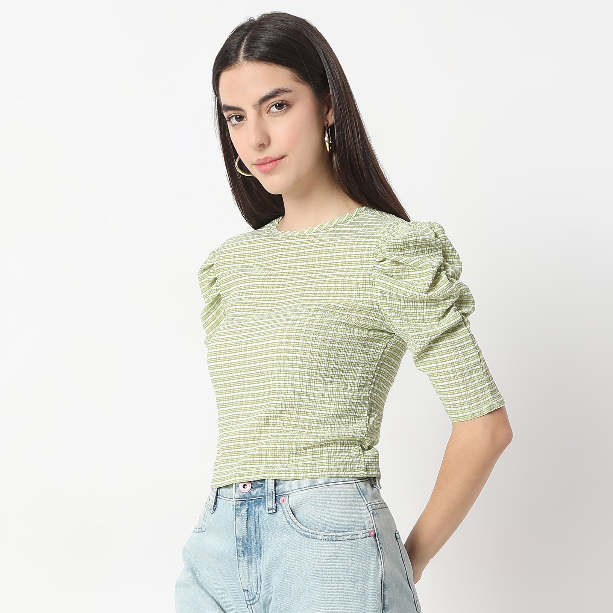 Checkered Puff Sleeve Betty Top