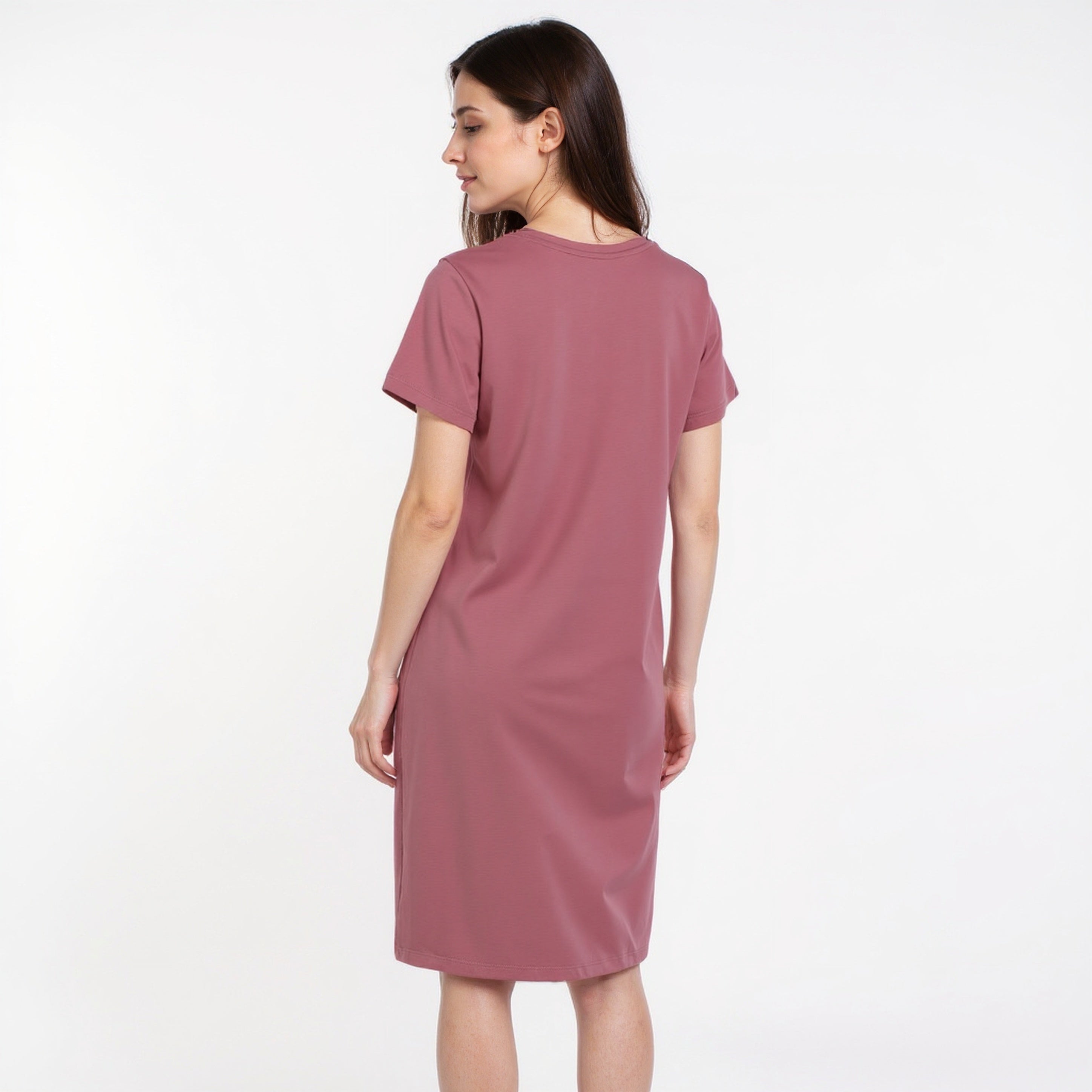 Step into elegance and comfort with our Dusty Rose Short Gown, a perfect blend of style and ease. This gown, crafted from 100% cotton, offers a breathable and soft touch against your skin, making it ideal for any occasion. The knee-length design and animal-themed print add a playful yet sophisticated flair, perfect for casual outings or relaxed evenings at home. The round neck and short sleeves provide a classic silhouette that flatters every figure, while the two pockets add a practical touch for carrying essentials.