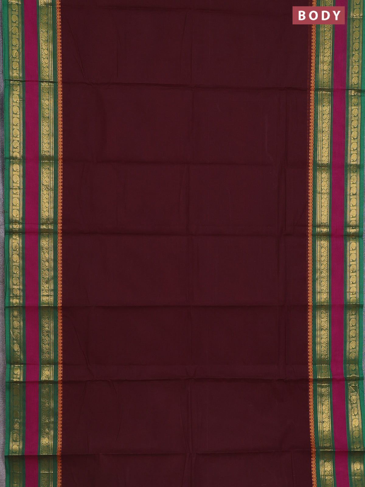 Chettinad cotton saree brown and green with thread woven buttas and rettapet zari woven border