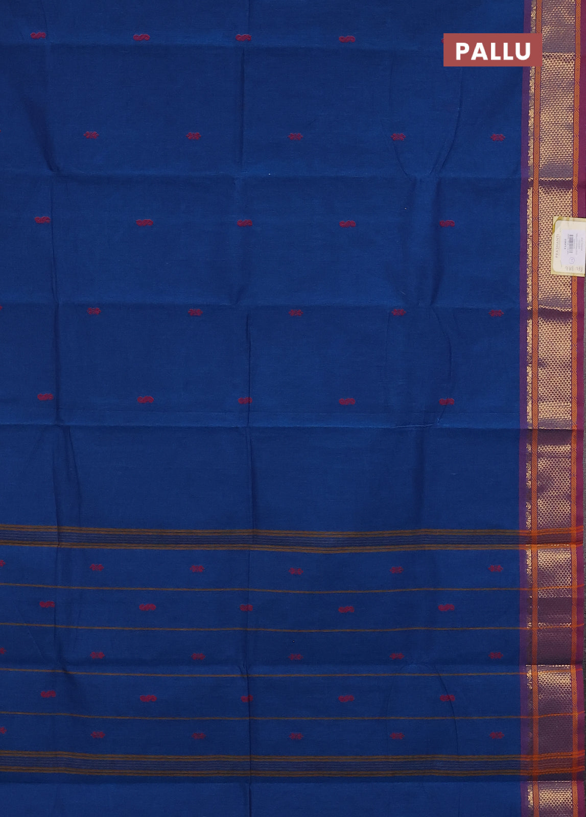 Chettinad cotton saree cs blue and dark pink with thread woven buttas and zari woven border
