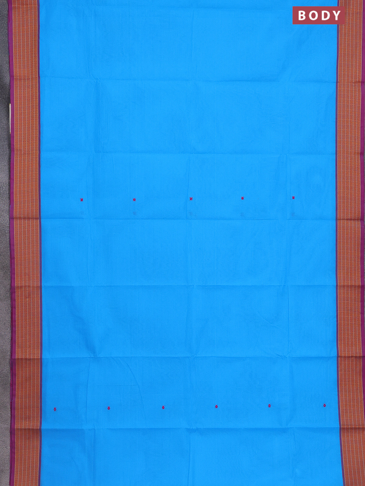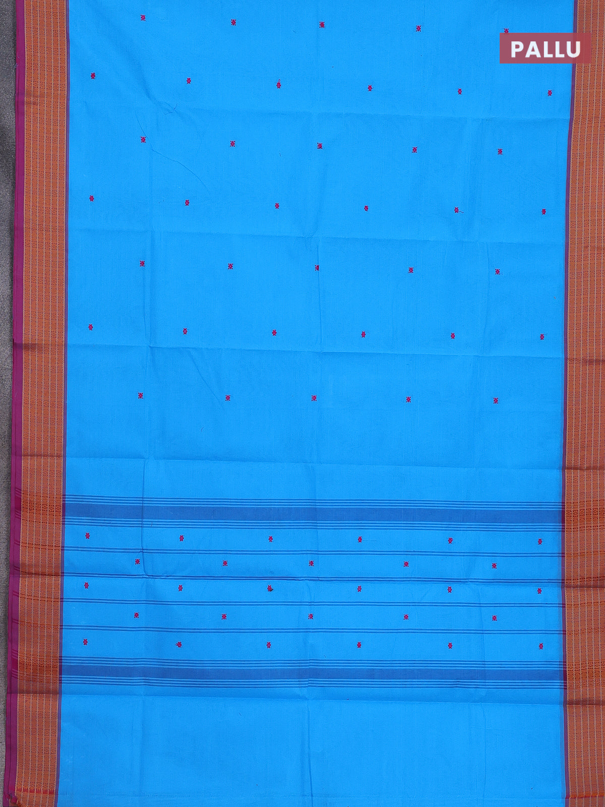 Chettinad cotton saree cs blue and pink with thread woven buttas and thread woven border