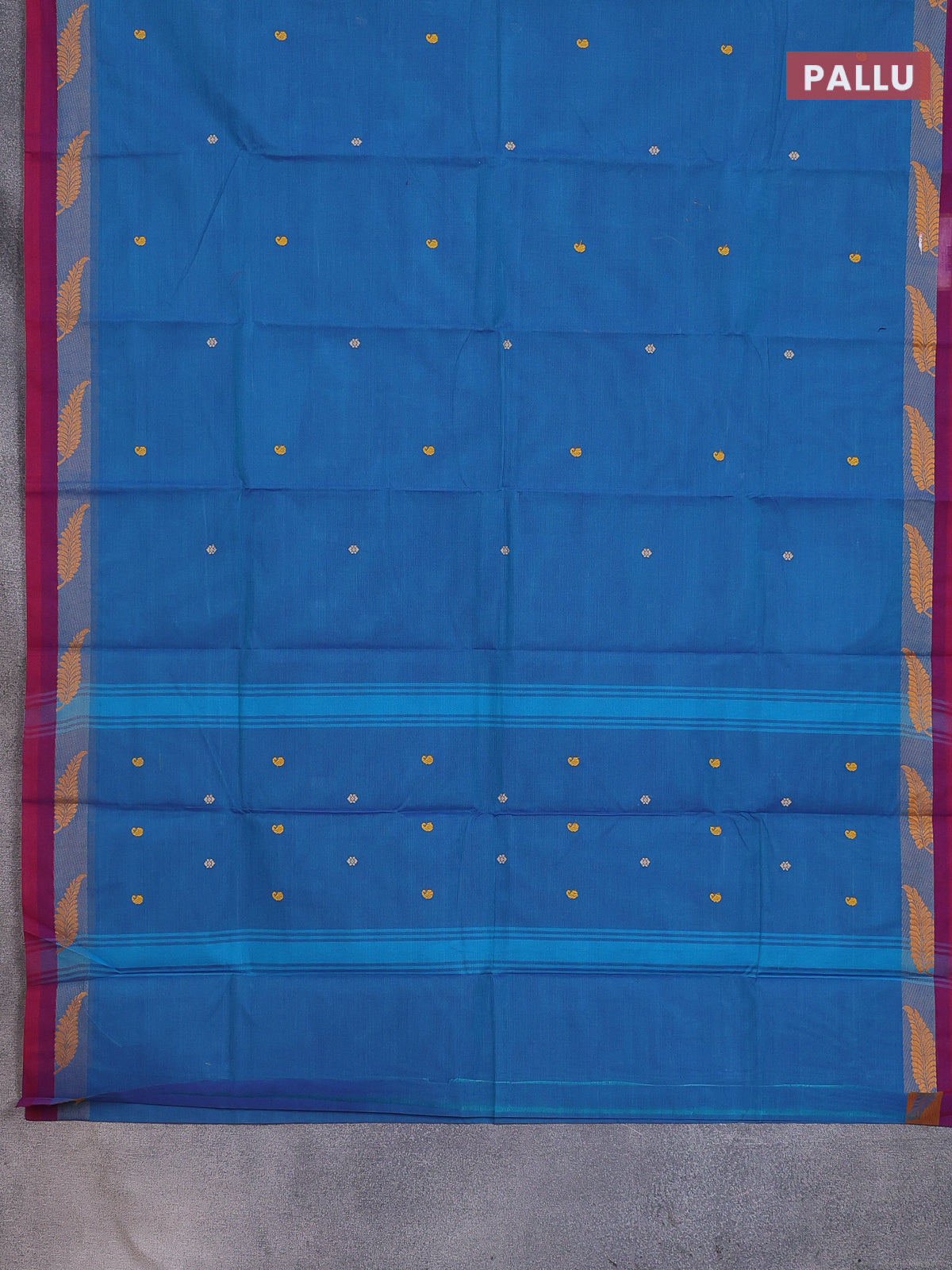 Chettinad cotton saree dual shade of cs blue and dual shade of maroon with thread woven buttas and thread woven simple border