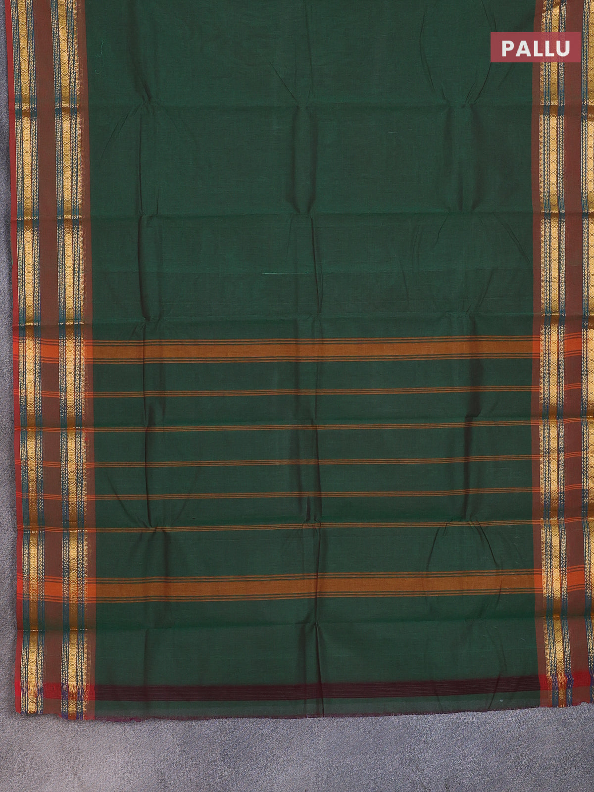 Chettinad cotton saree green and brown with thread woven buttas and rattapet zari woven border