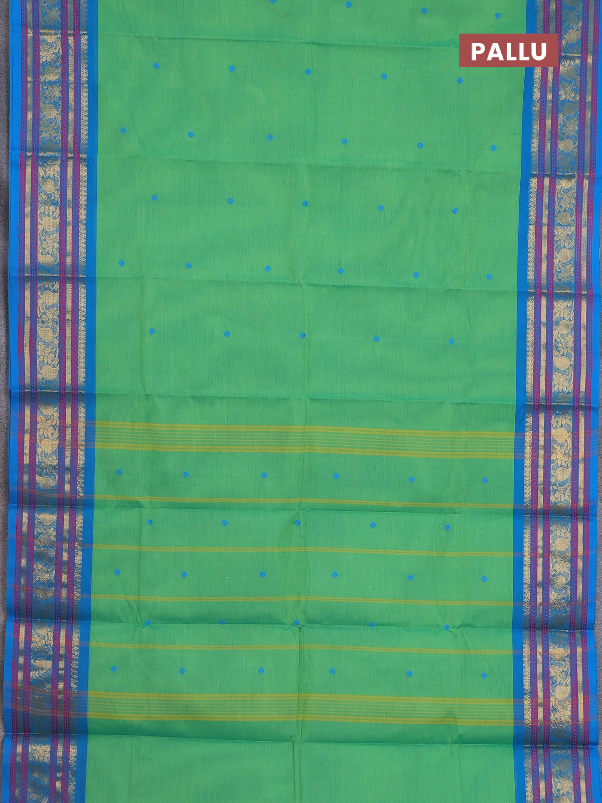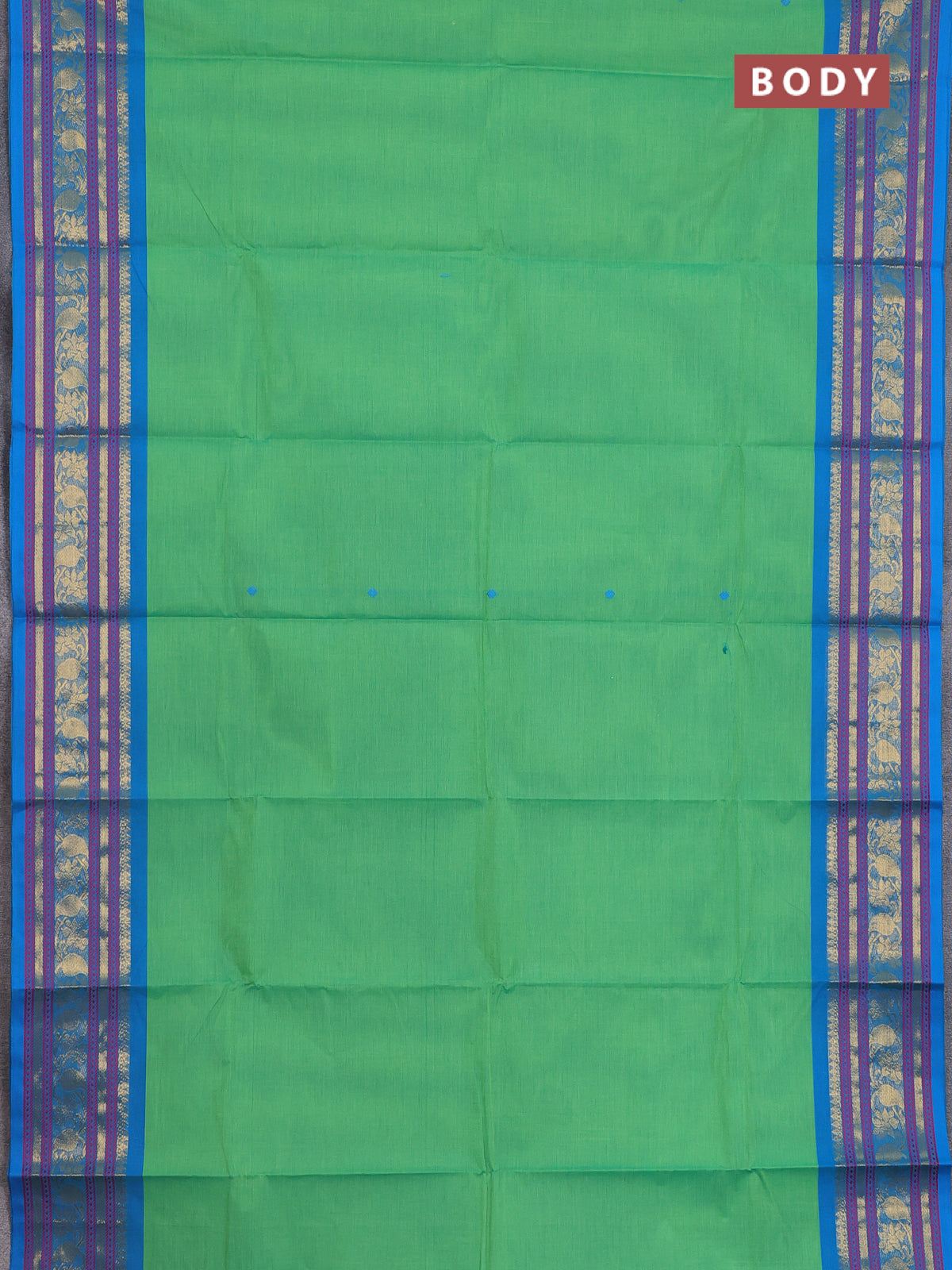 Chettinad cotton saree light green and cs blue with thread woven buttas and zari woven border