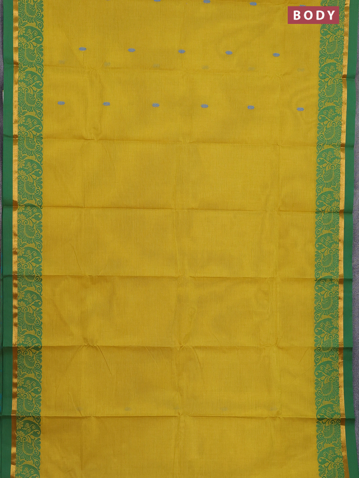 Chettinad cotton saree lime yellow and green with thread woven buttas and thread & zari woven border