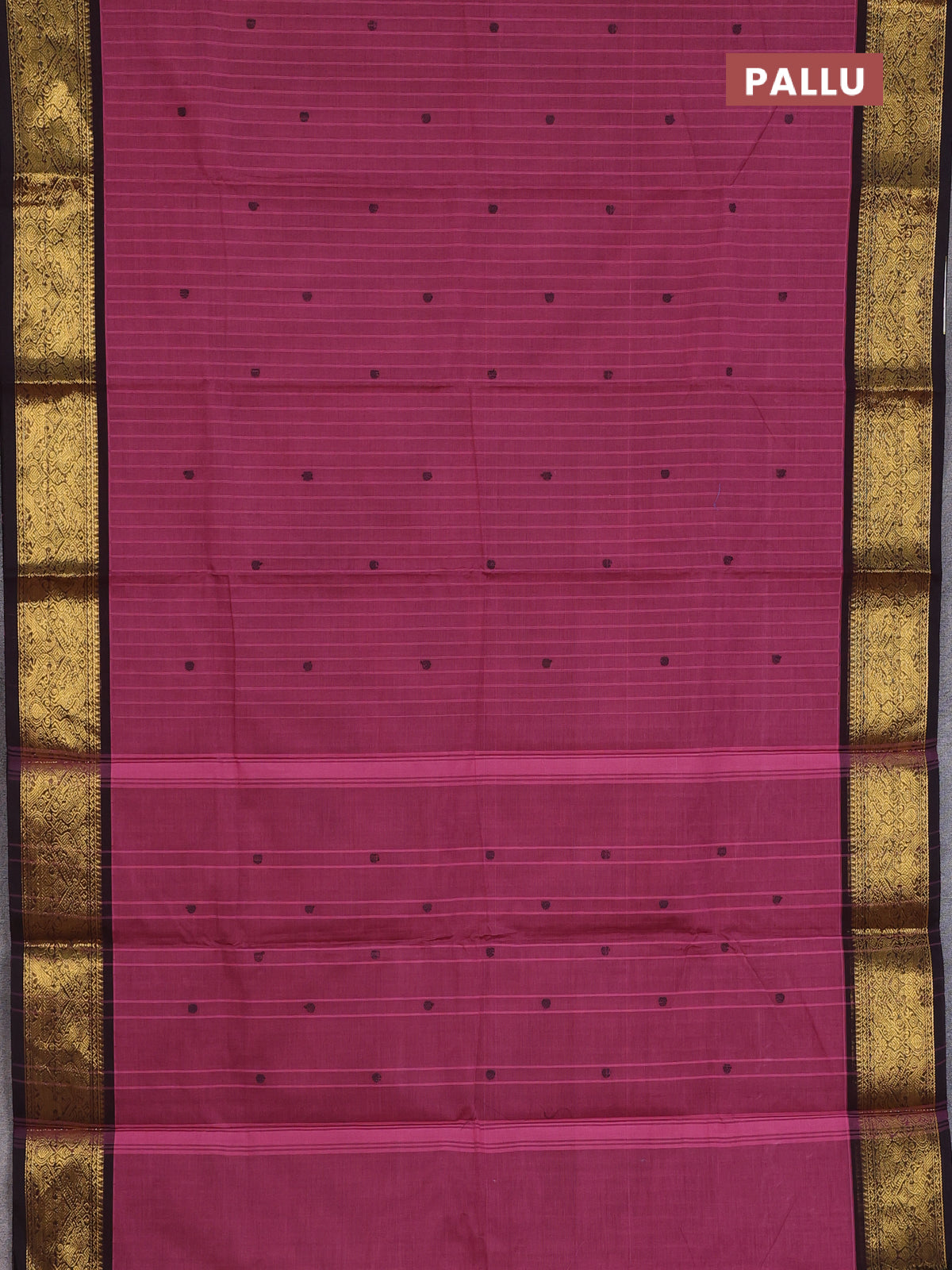 Chettinad cotton saree mauve pink and deep coffee brown with thread woven buttas and zari woven border