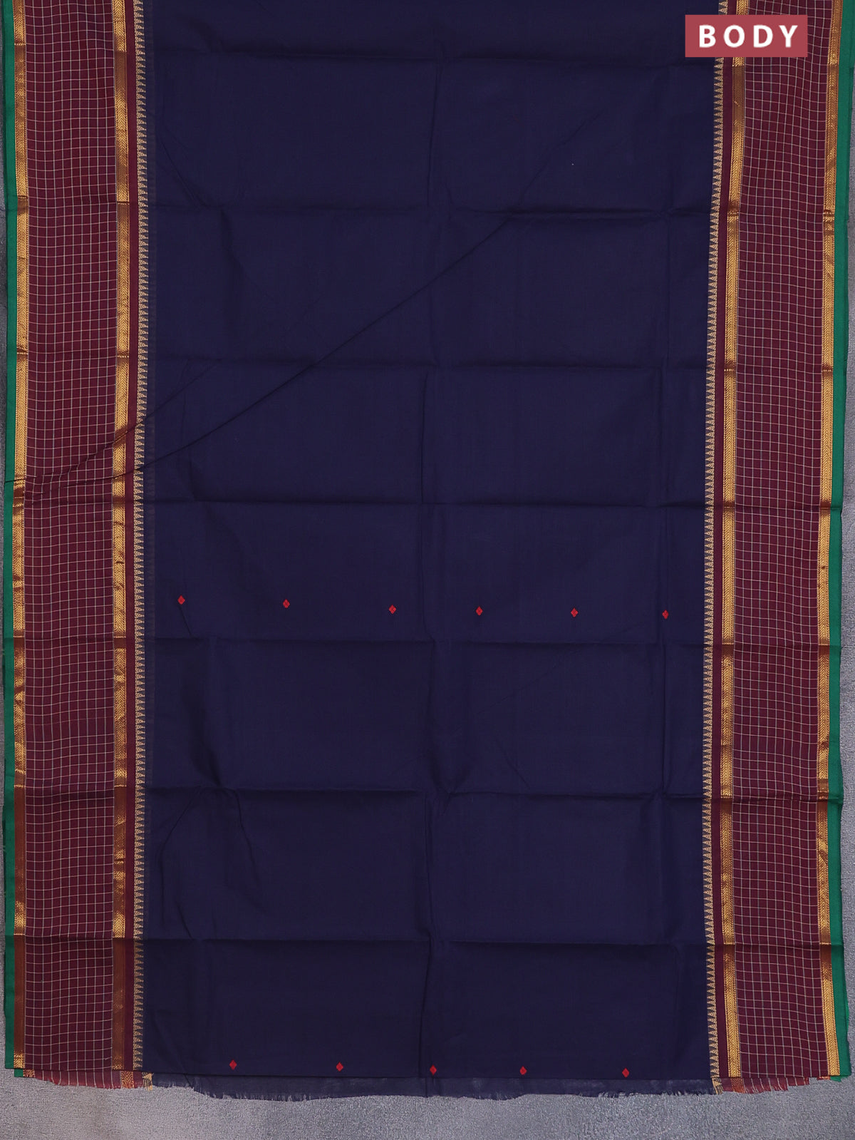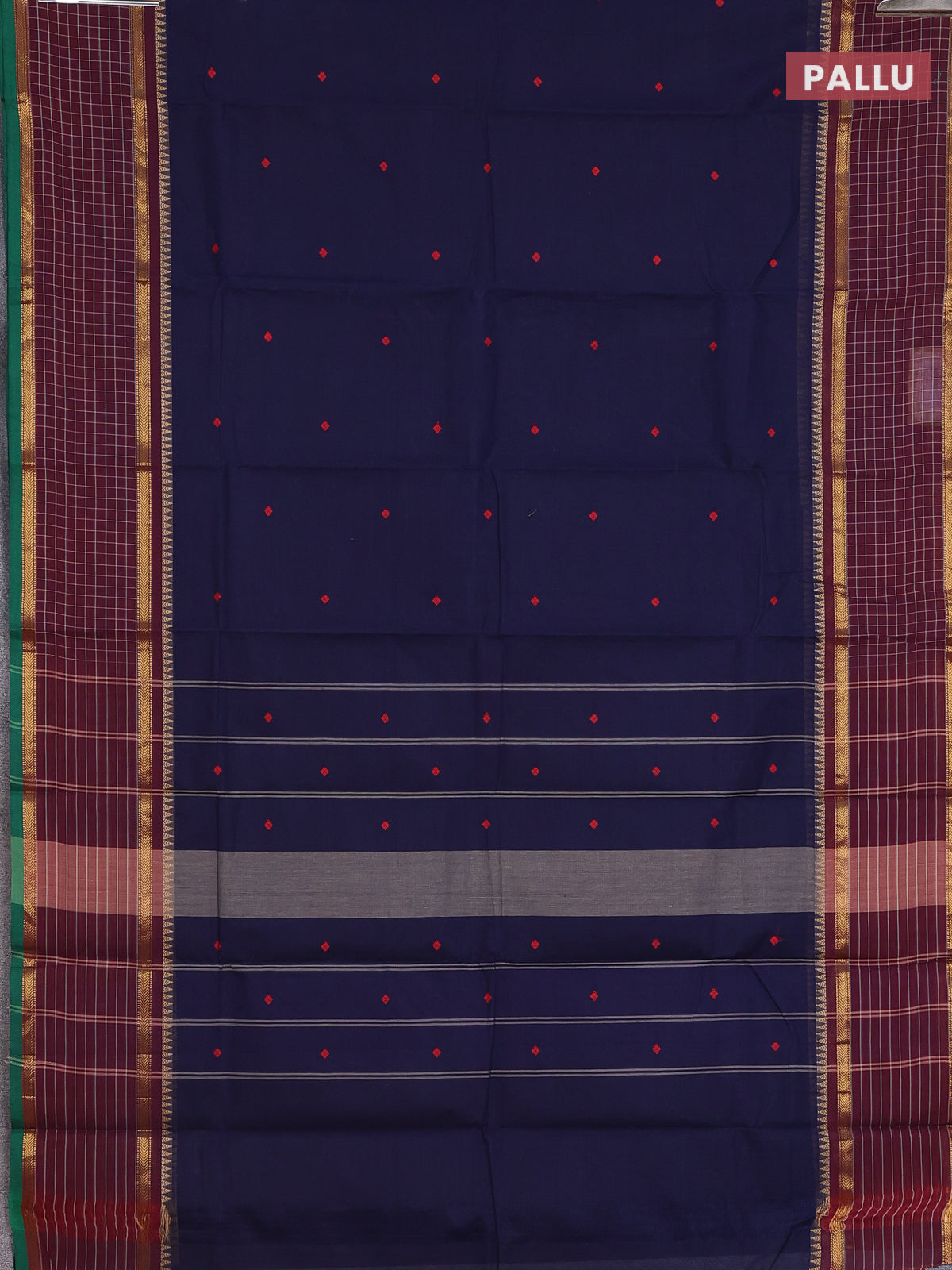 Chettinad cotton saree navy blue and deep maroon with thread woven buttas and zari woven checked border