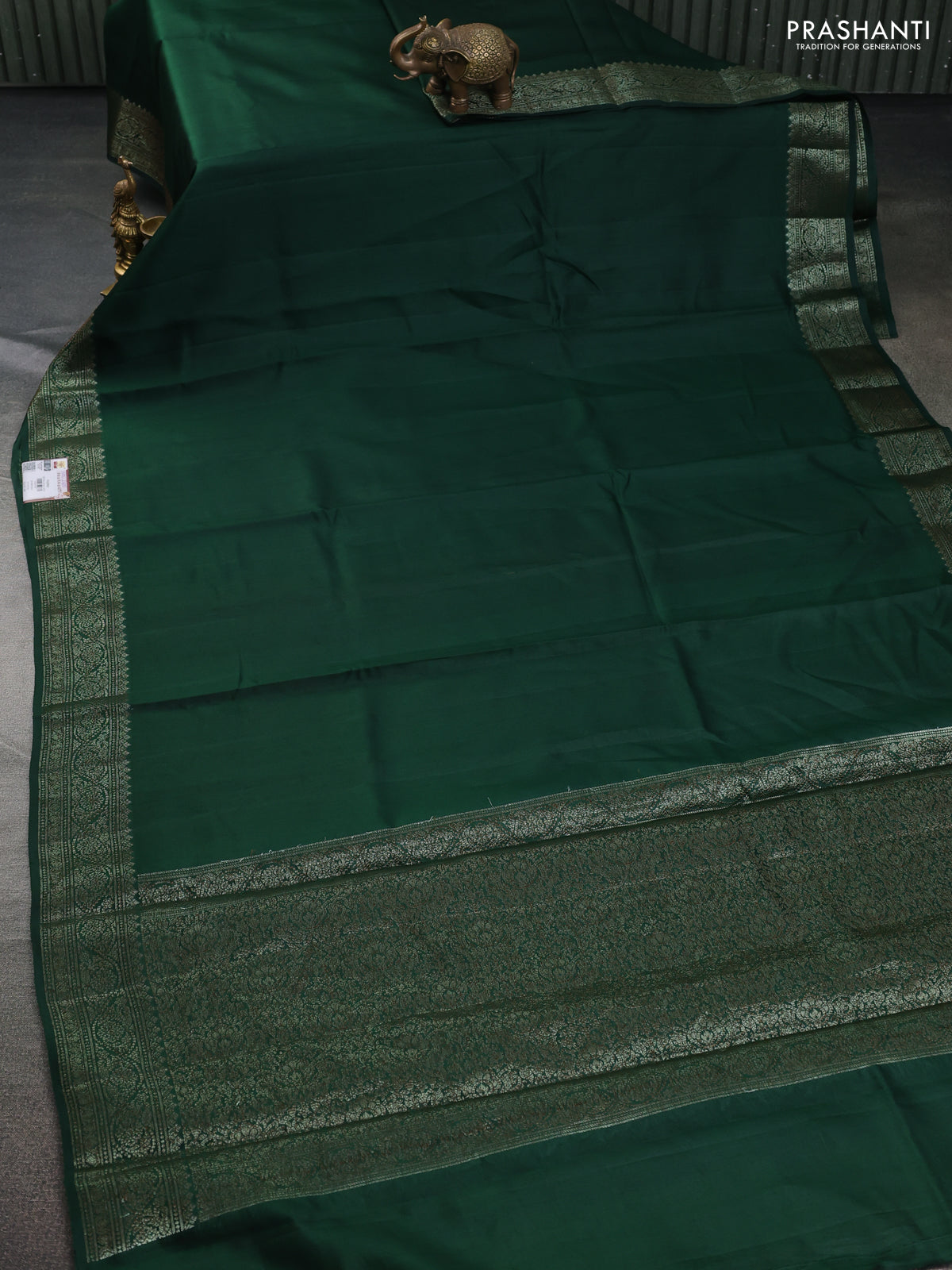Chiniya silk saree dark green and rust shade with plain body and woven border
